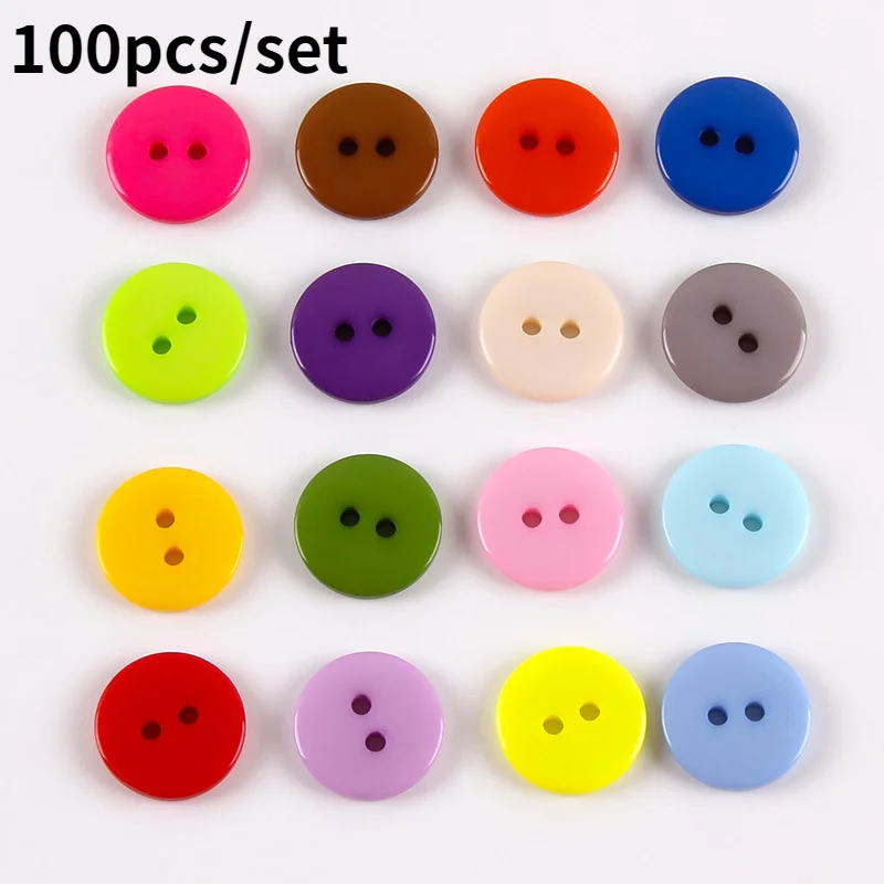 100 шт. 9 мм 11 мм, 15 мм, 20 мм с декоративными пуговицами для рукоделия смолы Пластик кнопка для кукол Скрапбукинг пуговиц для шитья с 2 отверстиями