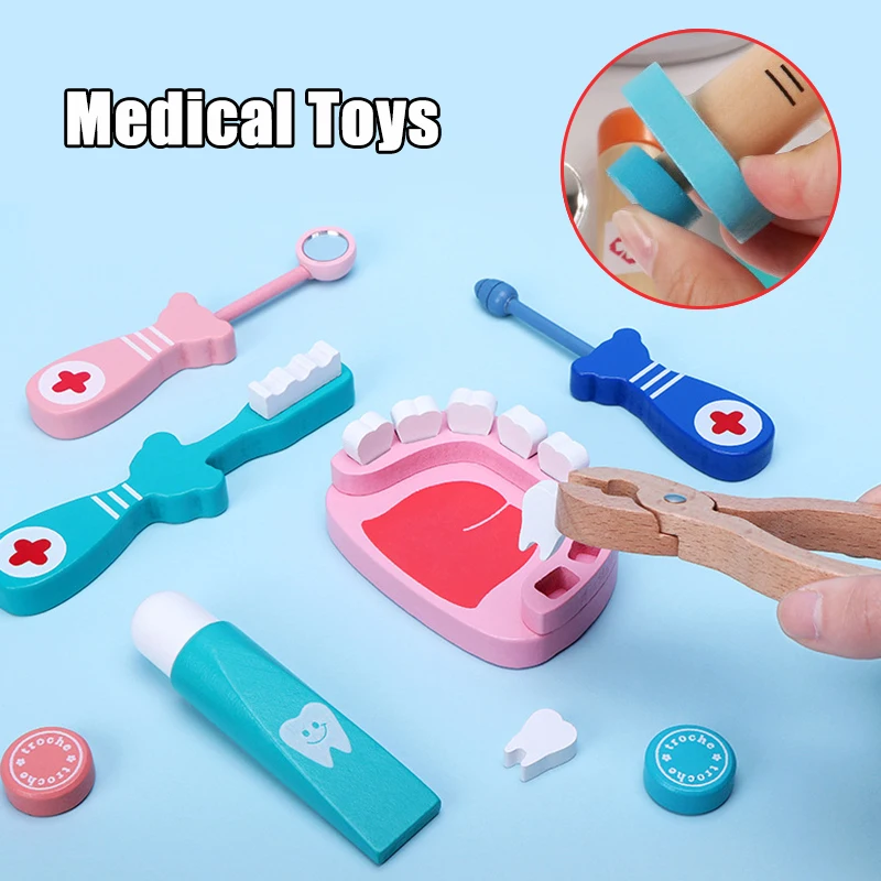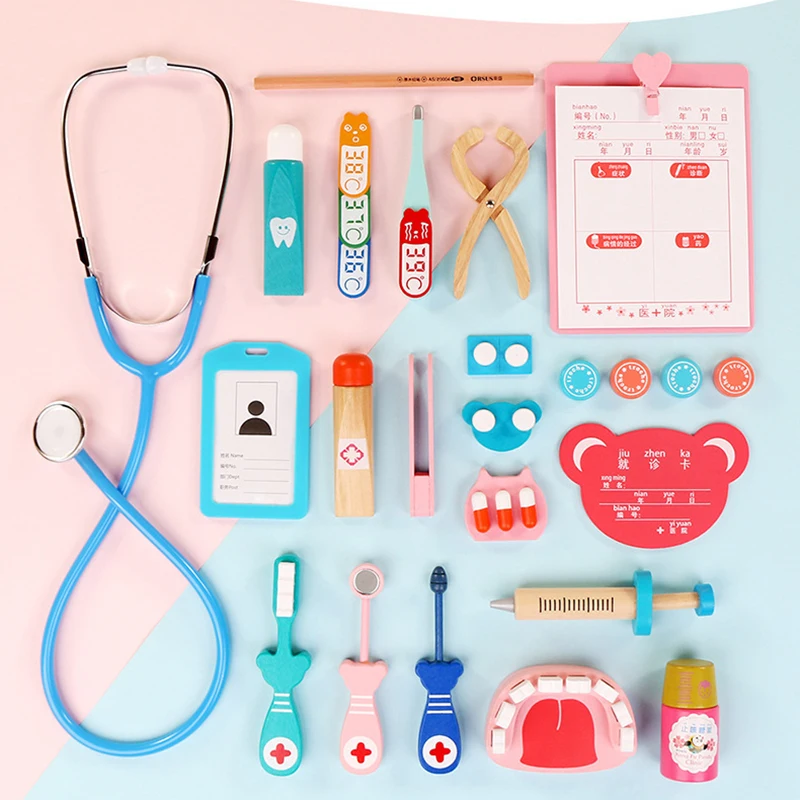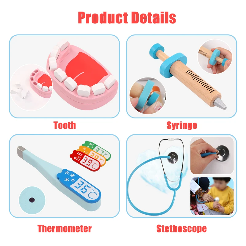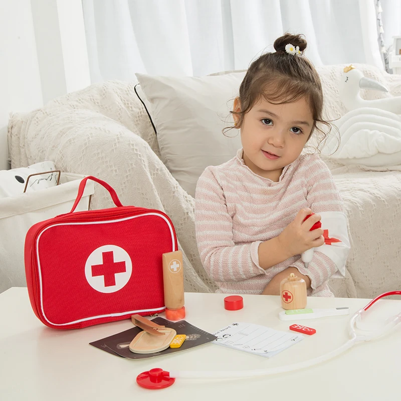 Набор докторских игрушек для детей, деревянный комплект для ролевых игр для девочек и мальчиков, красный медицинский стоматологический бокс для лекарств, тканевые сумки