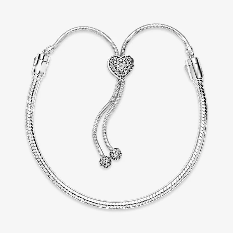 style13Pavé Heart Clasp Snake Chain Slider Bracelet