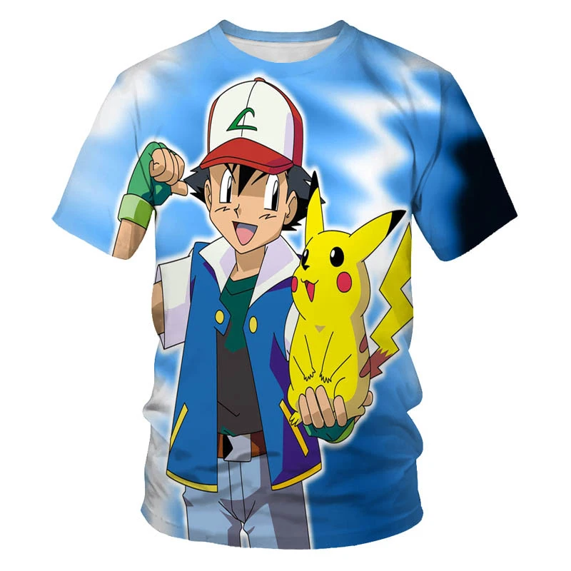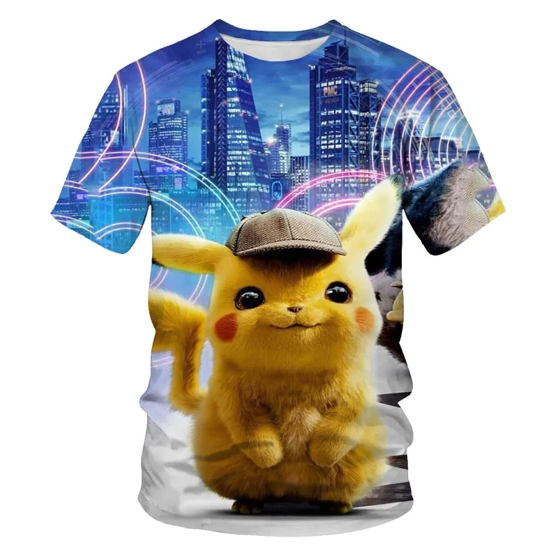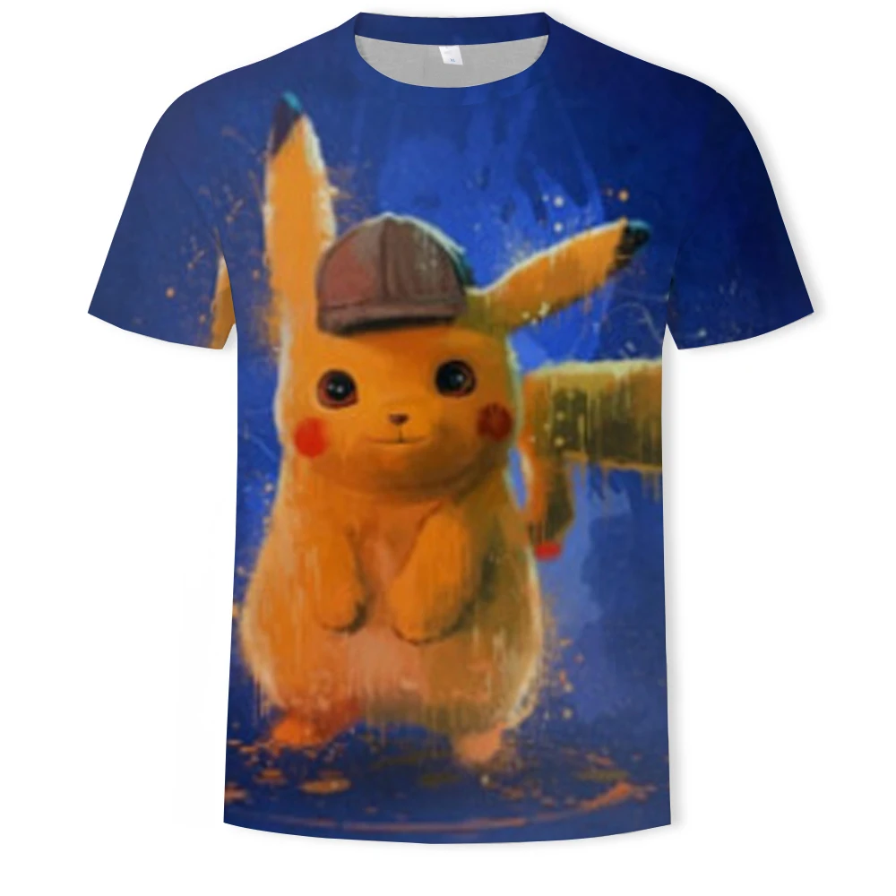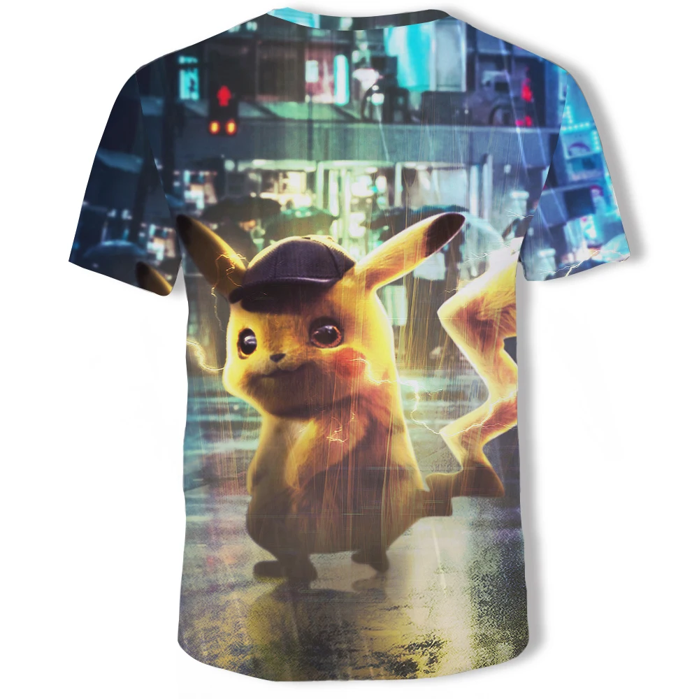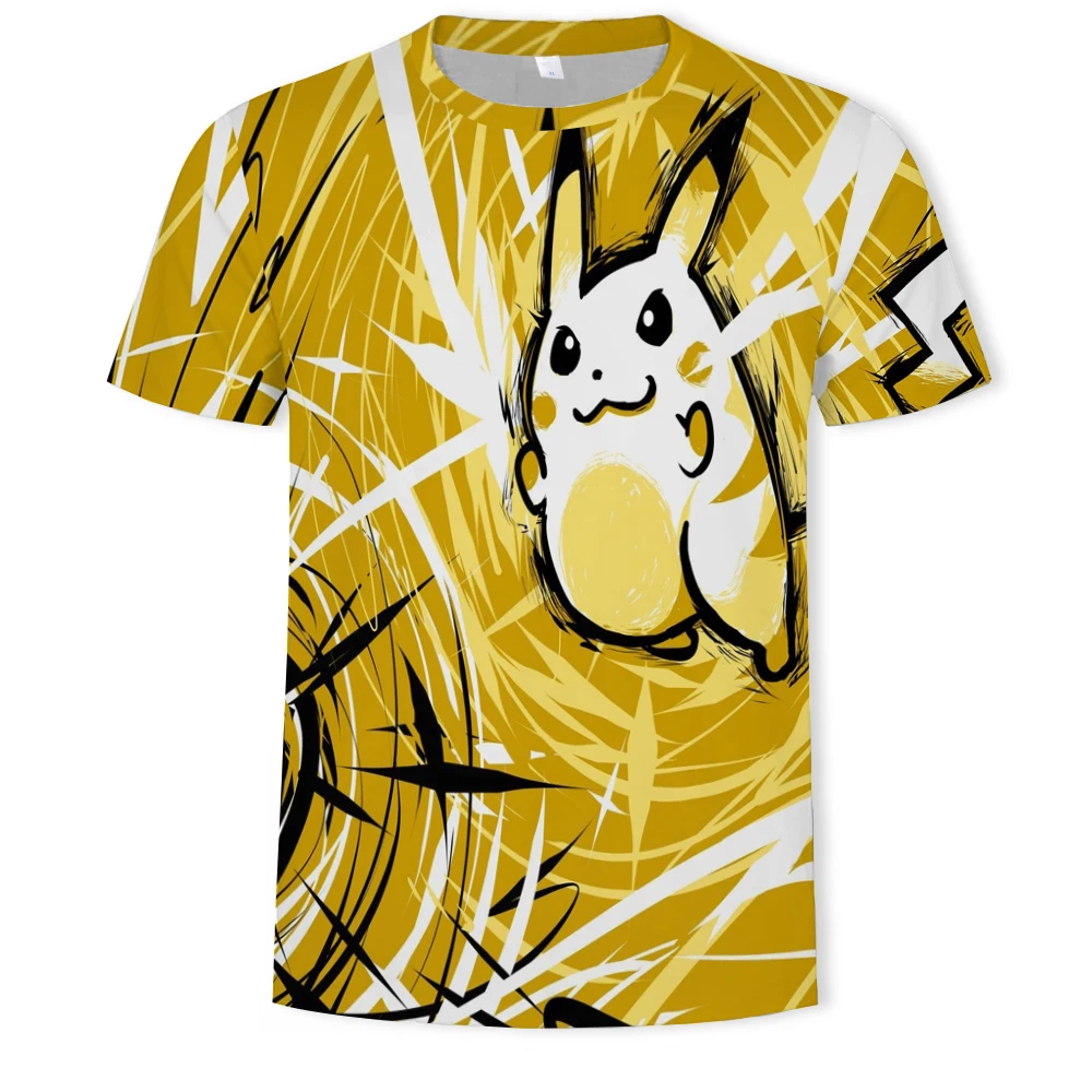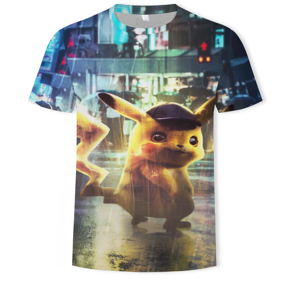 Мужская футболка большого размера с рисунком Аниме Пикачу, летняя уличная популярная забавная одежда в стиле хип-хоп для родителей и детей, размер 1106XL