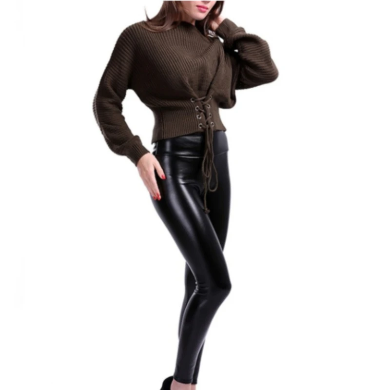Леггинсы женские кожаные, с высокой талией, теплые, с начесом, с эффектом пуш-апа, зима S-5XL