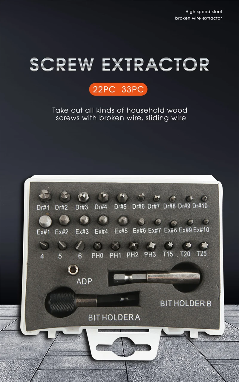 QUK сломанная гайка/Винт экстрактор набор 22/33 в 1 HSS сломанный винт удаление Инструменты для разделения сверла Тяжелых буровых инструментов наборы