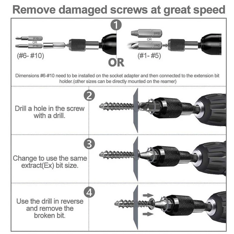 Набор для извлечения поврежденных винтов, комплект насадок для дрел...