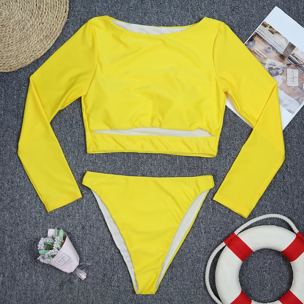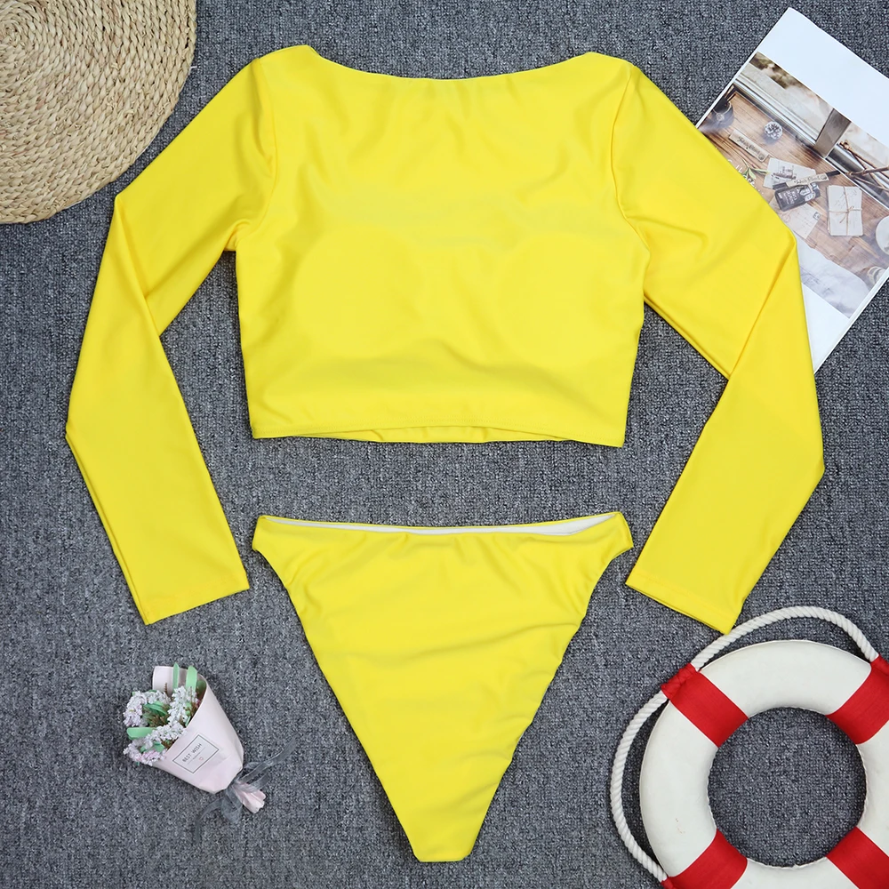 Летний сексуальный однотонный купальник с длинным рукавом, женский летний купальник для серфинга, костюм из двух предметов, купальный костюм, пляжная одежда, боди, бикини
