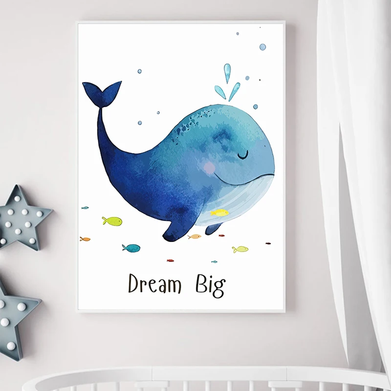 Кит, дельфин, черепаха, осьминог, настенная живопись, холст, океан, животные, скандинавские плакаты, печать, настенные фотографии, декор для детской комнаты