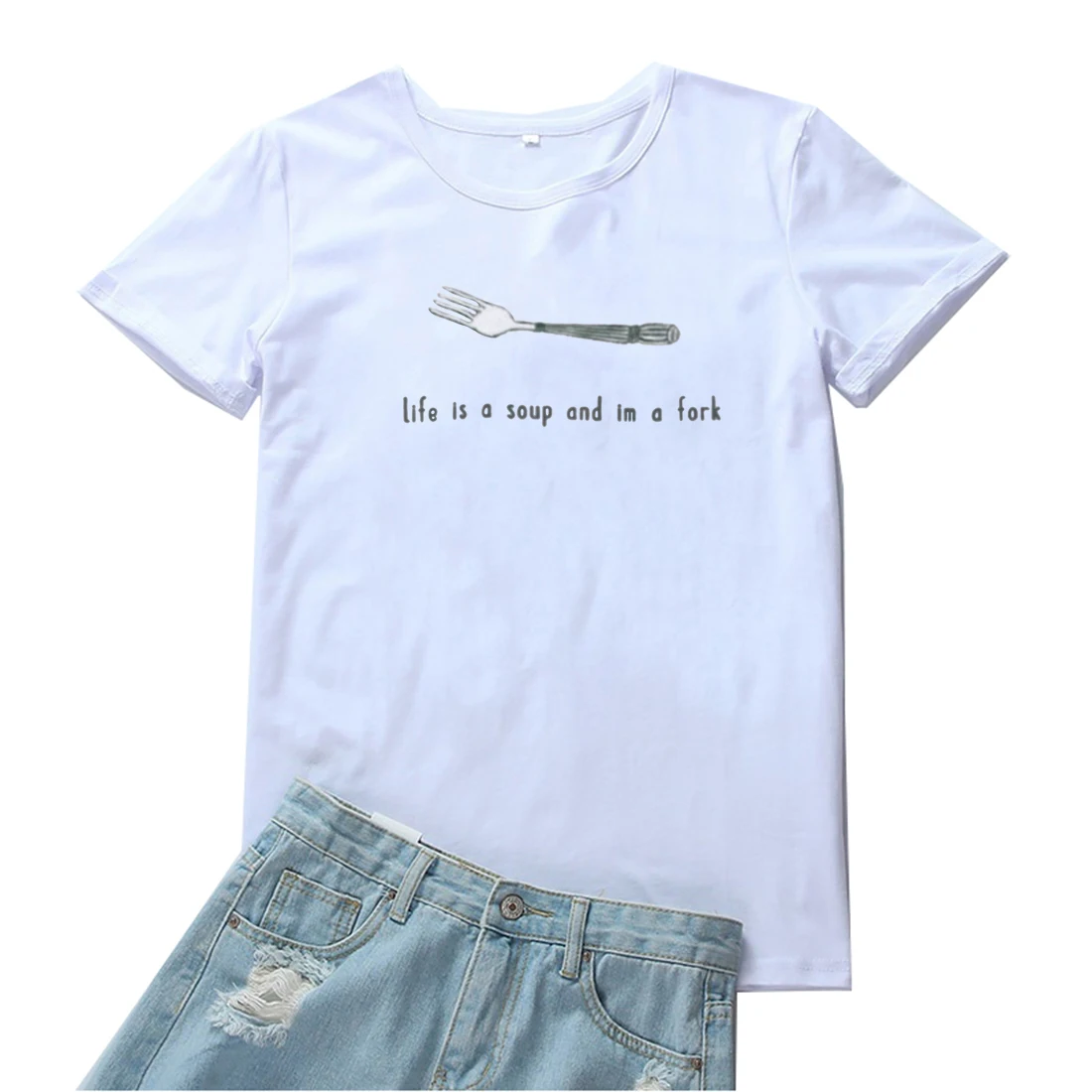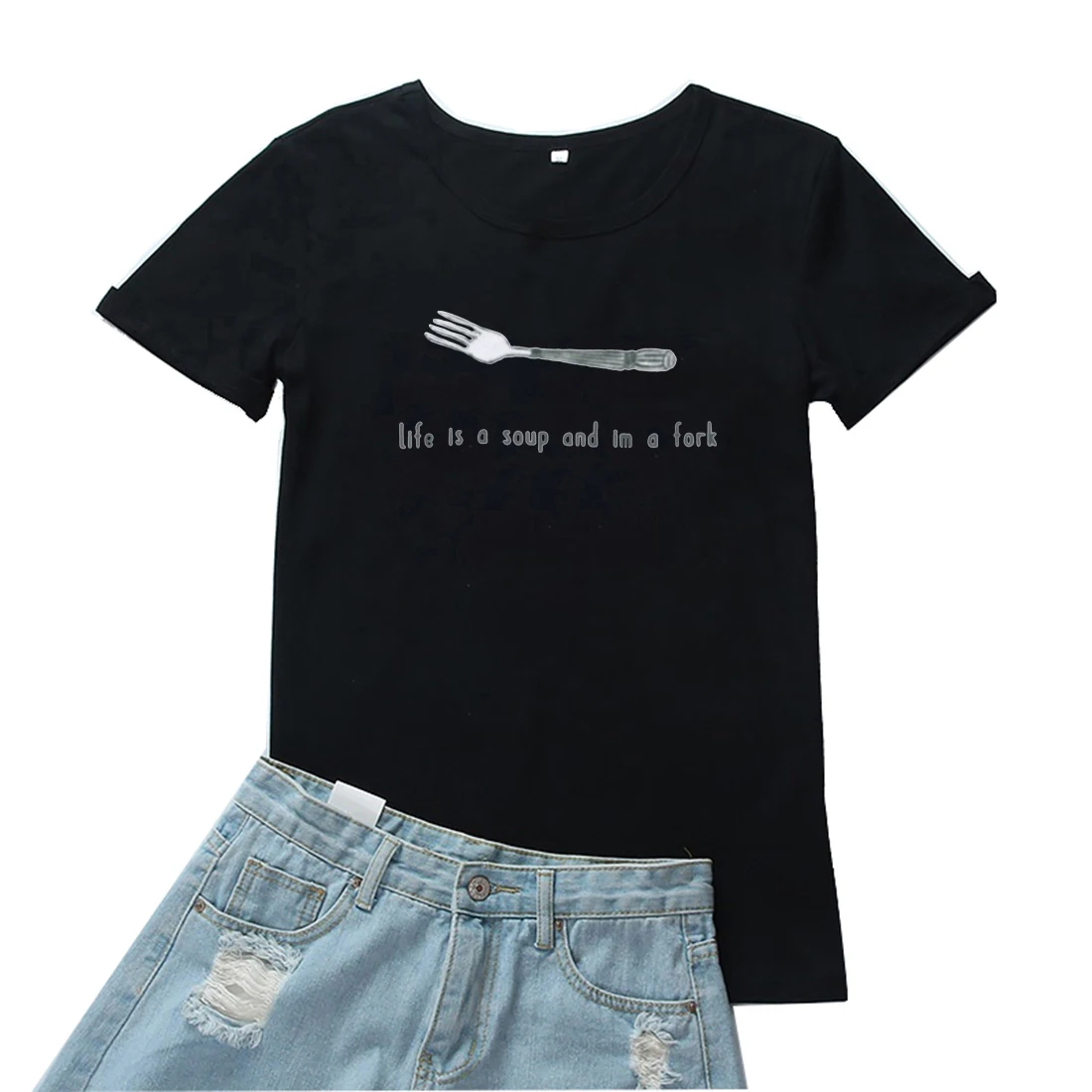 Женская футболка с забавным рисунком из сериала Жизнь это суп и я вилка