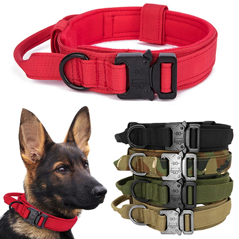 Военный Тактический ошейник для собак с регулируемой ручкой, нейлоновый ошейник для средних и больших собак, немецкий Шепард для прогулок и тренировок