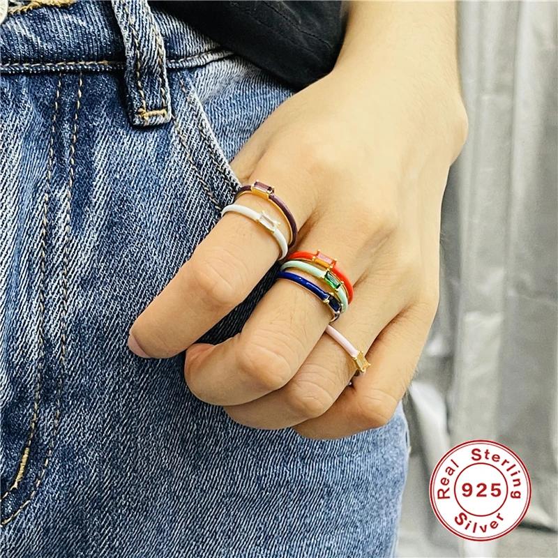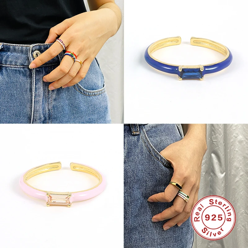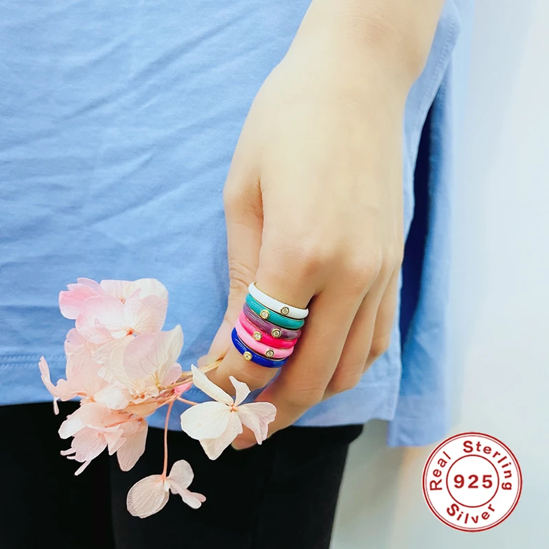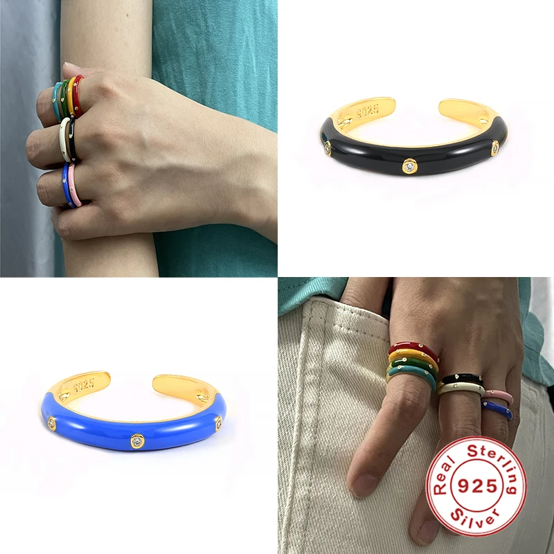 Регулируемые кольца из серебра S925 пробы с эмалью, обручальное кольцо конфетного цвета с капающим маслом для женщин и девушек, ювелирные изделия, хороший подарок