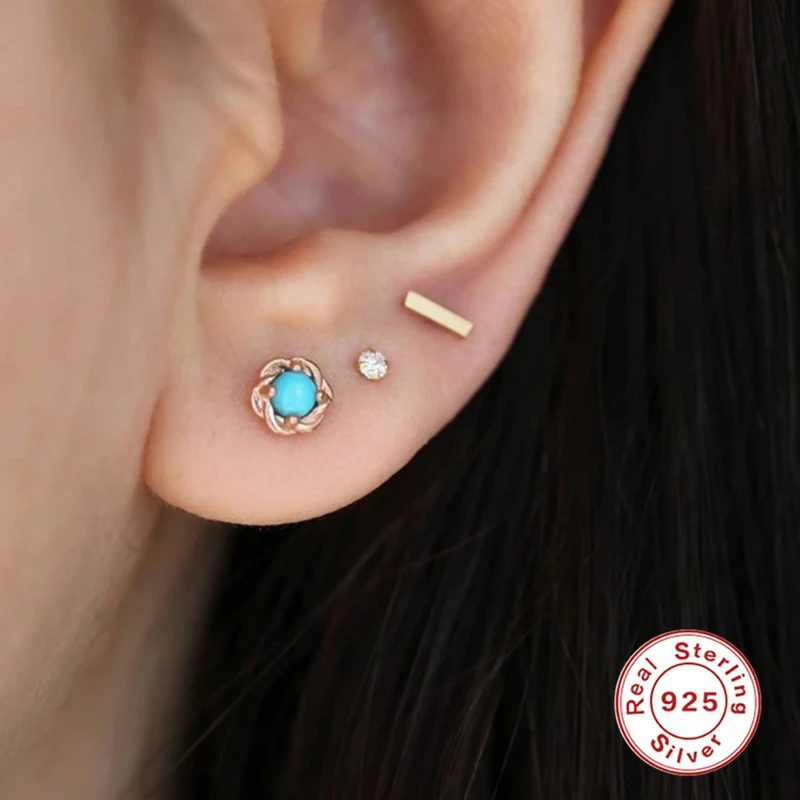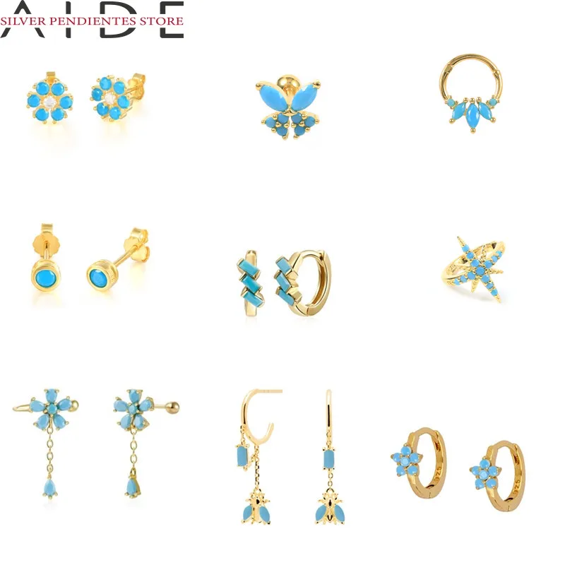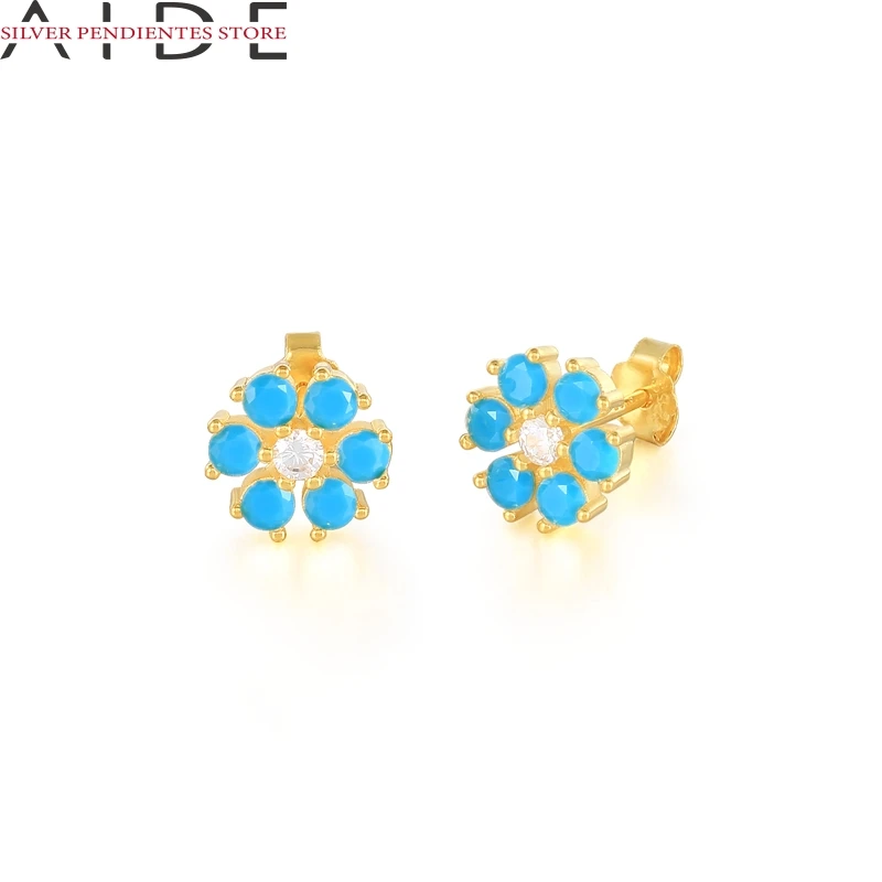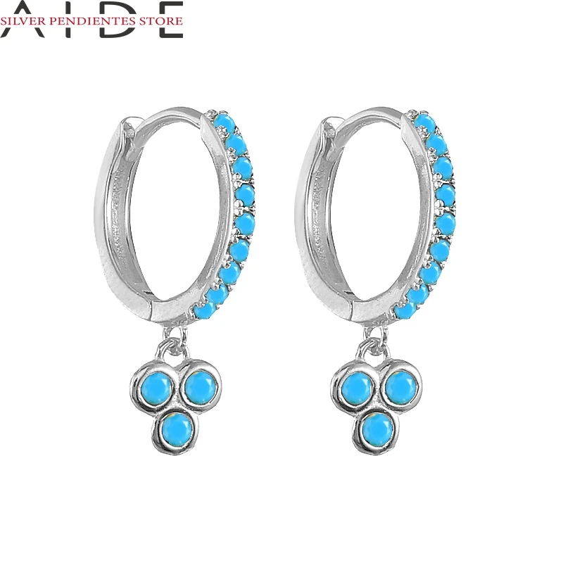 AIDE 925 стерлингового серебра женские серьги-кольца для женщин Круглый Бирюзовый Кристалл Эмаль серьги INS, комплект ювелирных изделий из золота, женские серьги