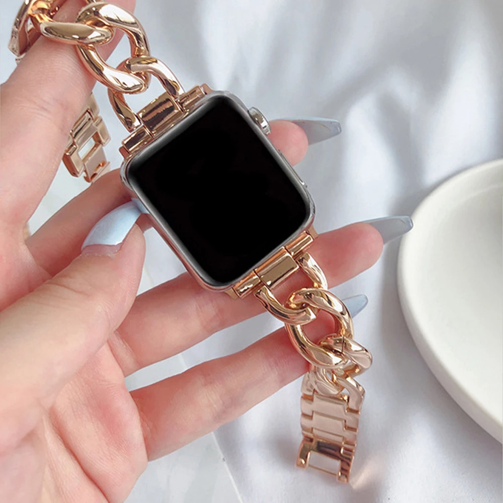 Цепочка стальная для Apple Watch Series 6 5 4 3 2 1, металлический Однорядный браслет для смарт-часов Apple Watch 40 мм 38 мм 42 мм 44 мм