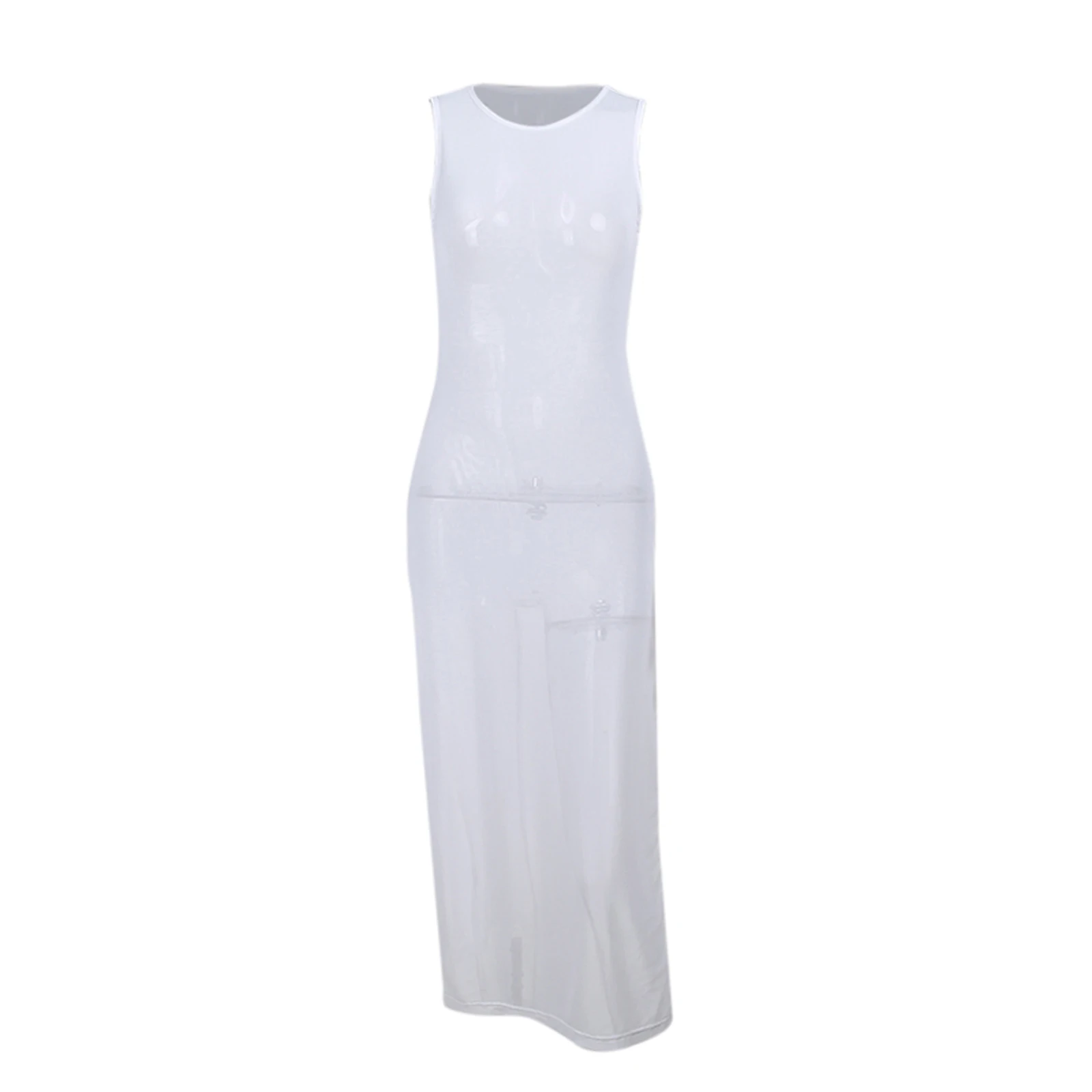 Женское сексуальное бикини, с разрезом, Пляжная накидка, белый, без рукавов, с круглым воротником, длинное, с разрезом, пляжная одежда