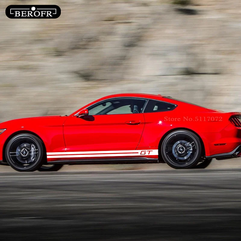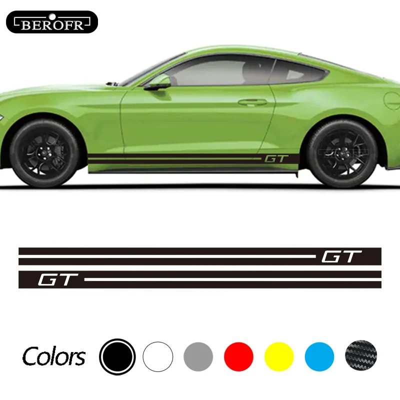 Стайлинга автомобилей углеродного волокна виниловые наклейки в виде Фотообоев c переводными картинками двери GT Logo полосатый сбоку юбка гонки тела Стикеры для Ford Mustang 2009-2019