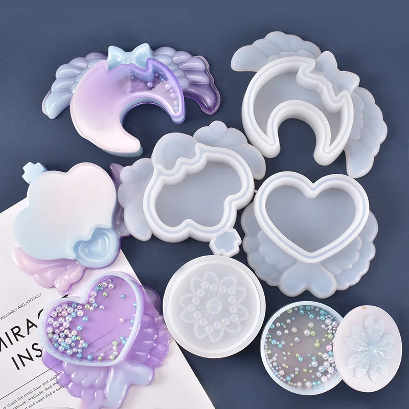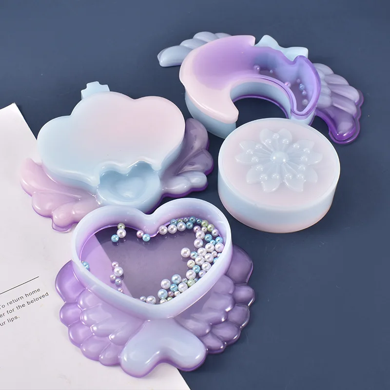 Шкатулка для украшений в форме сердца, короны, крыльев, Луны, силиконовые формы для самостоятельного изготовления эпоксидной смолы, шкатулка для хранения сакуры, декоративные инструменты из смолы