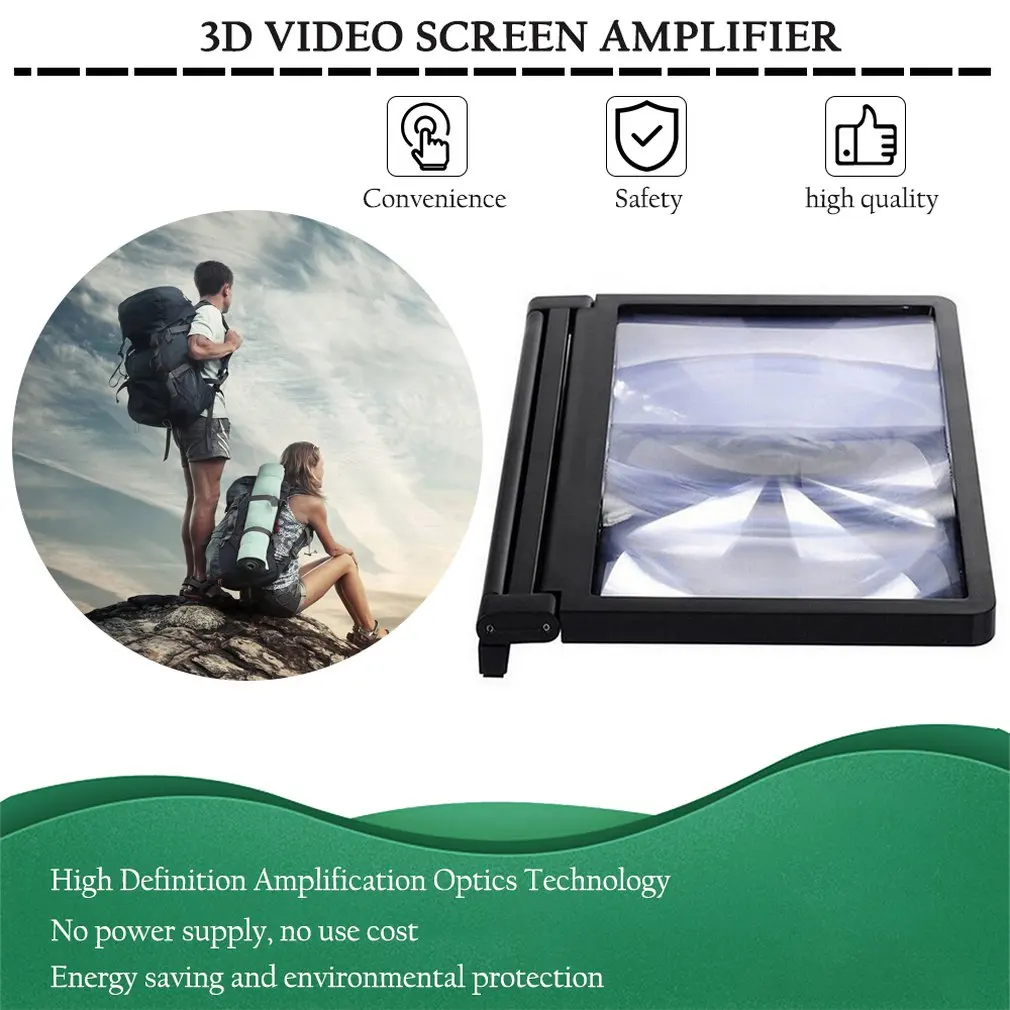 Особенности:1. С использованием оптической технологии Френеля высокой четкости, изображение на мобильный телефон может быть увеличено три раза, изображение четкое и реалистичное, и динамическое чувство сильнее.2. Продукт Простой в форме, щедрый, весовой светильник, небольшой по размеру и легко носить с собой, подходит для различных случаев, в помещении, кемпинга, путешествий, отдыха и так далее.3. Использование высокой четкости увеличительной оптической технологии, без источника питания, без затрат на использование, энергосбережения и охраны окружающей среды.4. Структура продукта использует множество инновационных технологий (запатентованных в штате), простой, трудно побить, может быть подходит для различных типов мобильный телефон.5. Особенно при просмотре 3D мобильных фильмов, стереоскопический эффект сильнее. Описание: Он также может быть использован в качестве традиционного сквозного увеличительного стекла, из-за его большой увеличительной площади, больше подходит для пожилых книг для чтения, газет, онлайн-новостей. Характеристики:Название продукта: мобильная видео лупаЭкран Размер: 8,2 дюйм (ов)Размер продукта:18,5*12,5*10СмМатериал изделия: линзы + ABS Цвет: белый/черный (опционально) Посылка включает в себя: 1 x 3D усилитель видеоэкрана Примечания:1. Из-за разницы между различными мониторами изображение может не отражать фактический цвет изделия. Мы гарантируем, что модель реального изделия не отличается от представленной на фото.2. Из-за ручного измерения и различных методов измерения, пожалуйста, допускайте отклонение на 1-3 см. Спасибо!2. Возможны незначительные отклонения в размерах из-за различных измерений вручную.