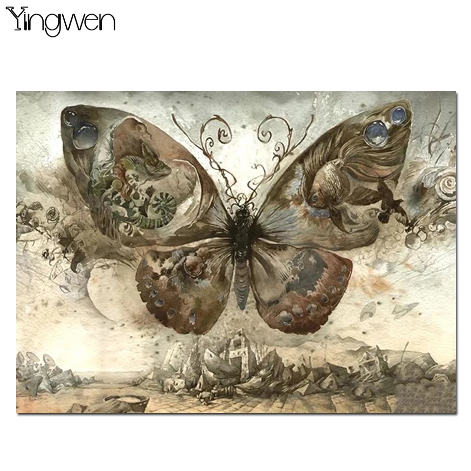 Алмазная живопись с изображением бабочки, пейзажа, полная круглая квадратная Алмазная вышивка 5D, сделай сам, абстрактная Вышивка крестиком, мозаика, украшение для дома