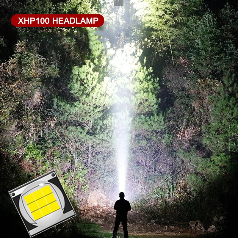 Налобный фонарь XHP100, 18650 лм, с зарядкой от USB