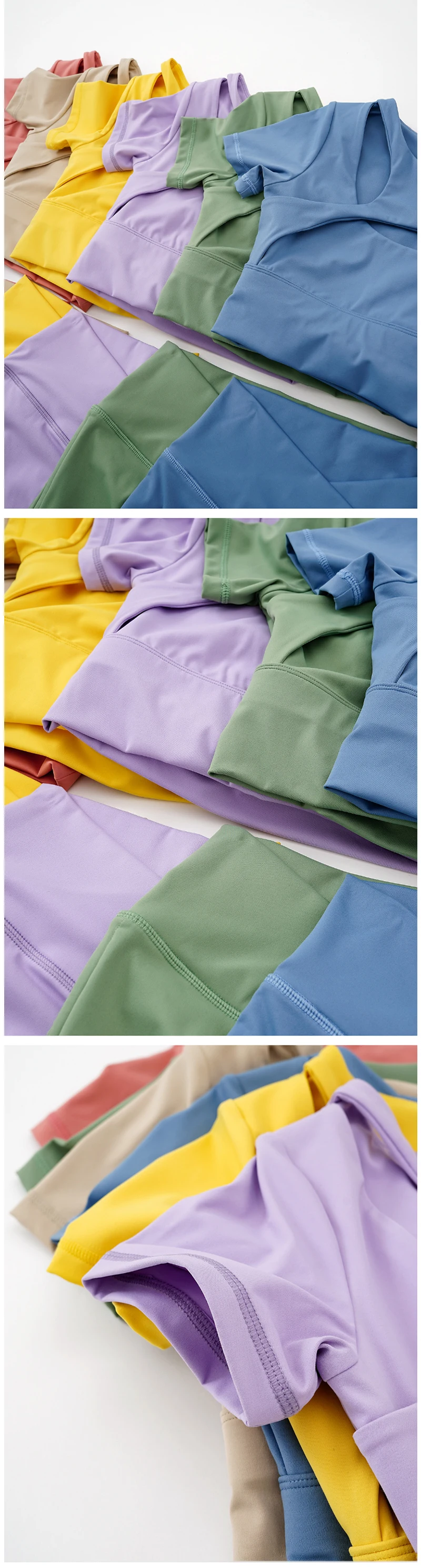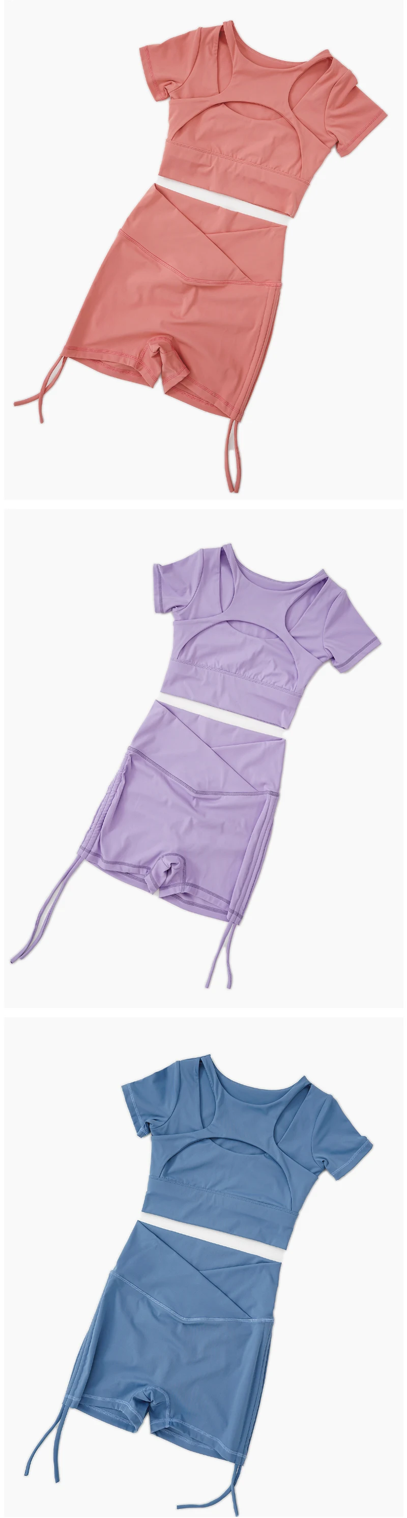 Комплект из 2 предметов, сексуальный костюм для йоги с коротким рукавом и вырезами, топ для бега и спорта, футболка и шорты для йоги, одежда для тренажерного зала, тренировок и фитнеса, спортивная одежда