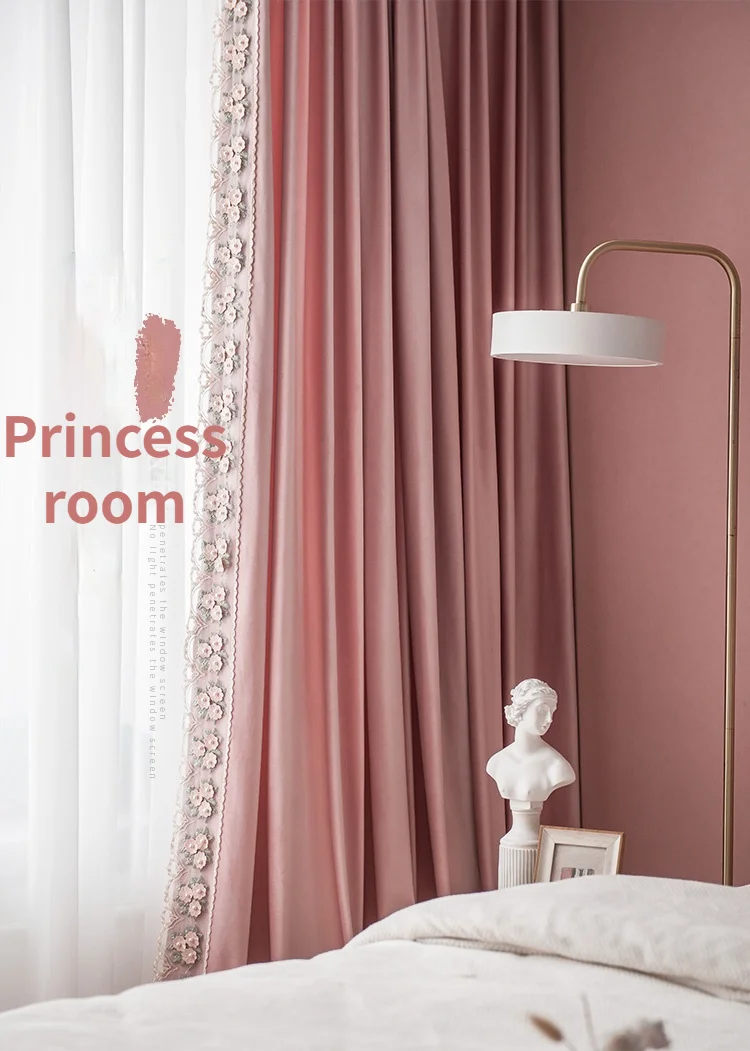 Светильник кие Роскошные кружевные бархатные розовые шторы в стиле принцессы светонепроницаемые шторы для спальни гостиной готовый продукт на заказ
