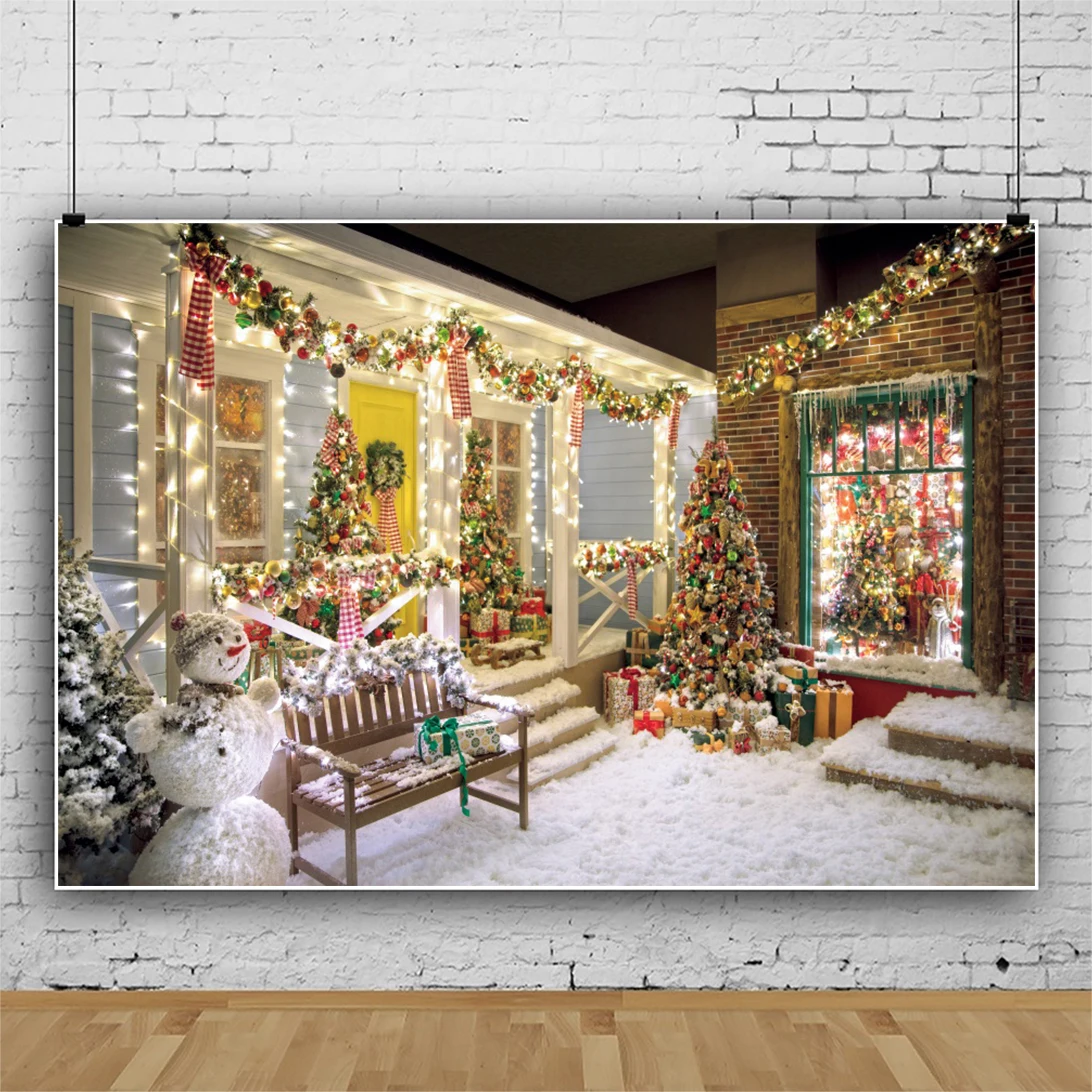 Фон для фотосъемки с изображением зимних рождественских праздников, сельского двора, снеговика, вечеринки, детских праздников