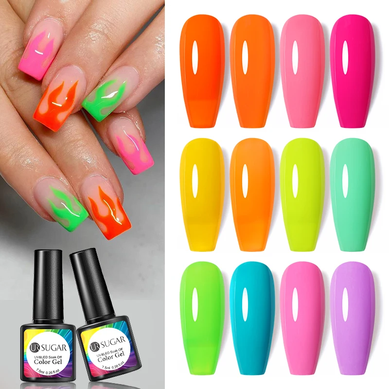Гель-лак для ногтей UR SUGAR, флуоресцентный, неоновый, розово-красный, декор для ногтей, салон стойкий, удаляемый замачиванием, УФ-светодиод