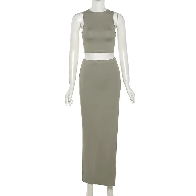 Женский комплект из двух предметов wsevypo, элегантный однотонный топ без рукавов и Длинный топ с разрезом, лето Офисная Женская юбка
