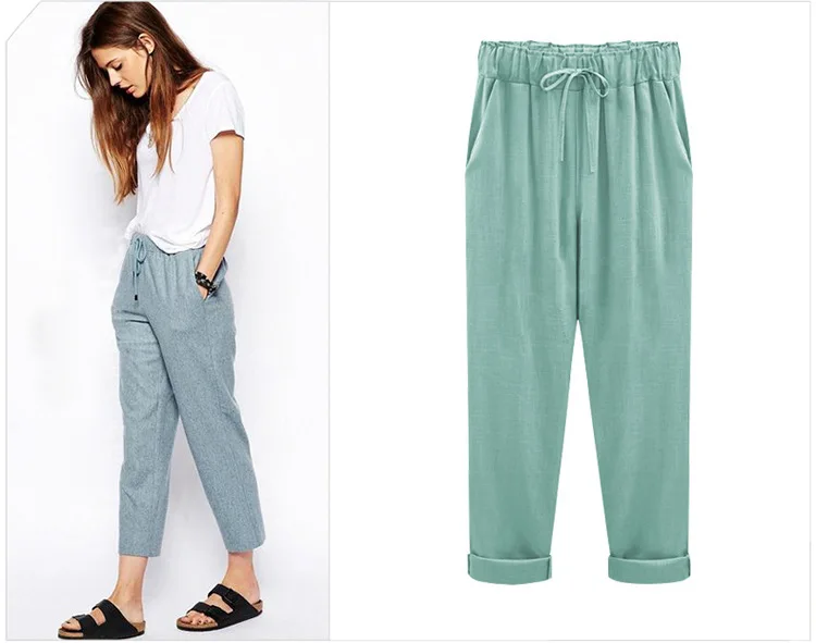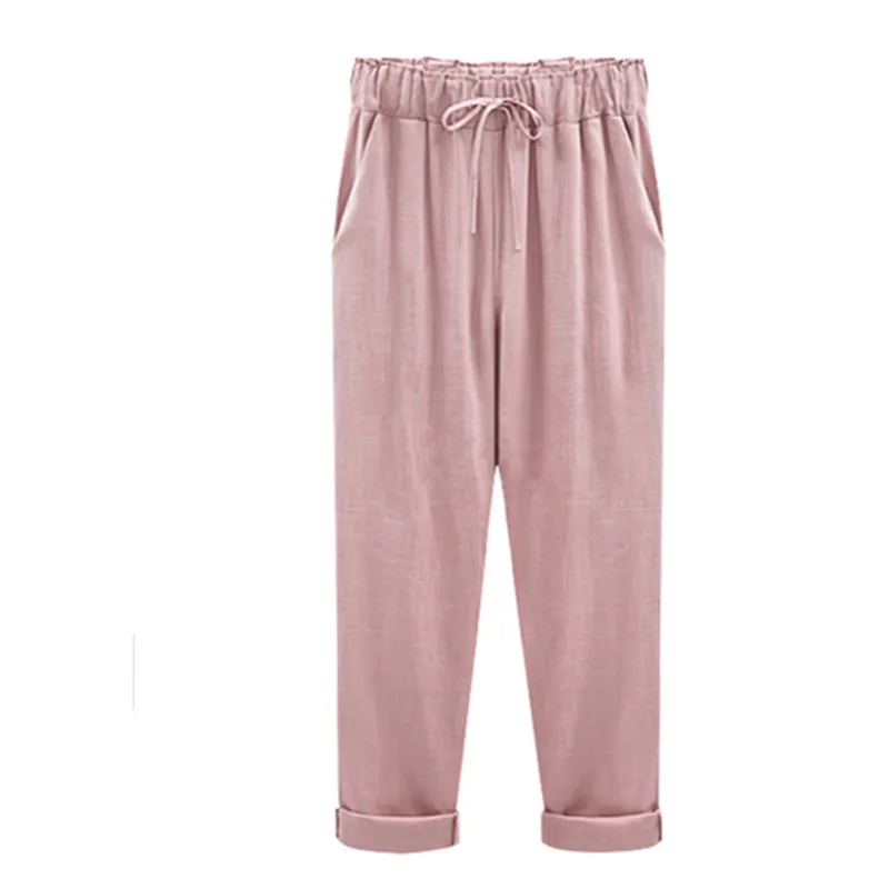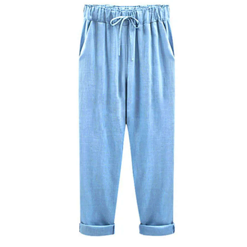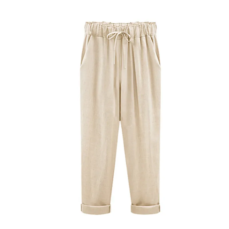 Брюки женские хлопково-льняные с высокой талией, модные повседневные свободные штаны до щиколотки, с эластичным поясом, большие размеры 6Xl, весна-лето