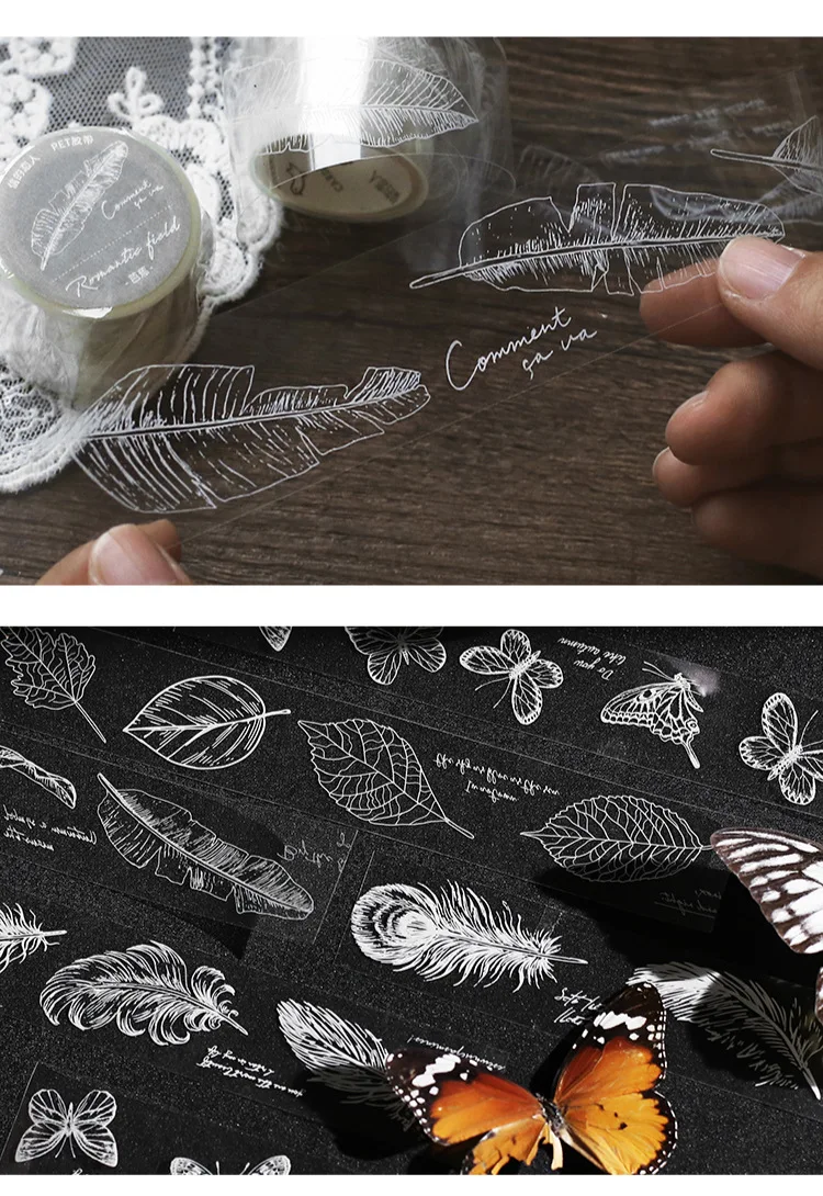 1 шт. прозрачная Васи-лента с перьями, бабочками и растениями, клейкая лента, самодельная наклейка для скрапбукинга, этикетка, Маскировочная лента
