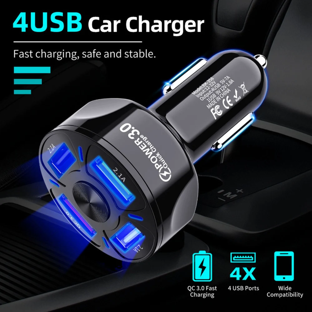 Автомобильное зарядное устройство с 4 USB-портами, 3 А, QC 3,0, быс...