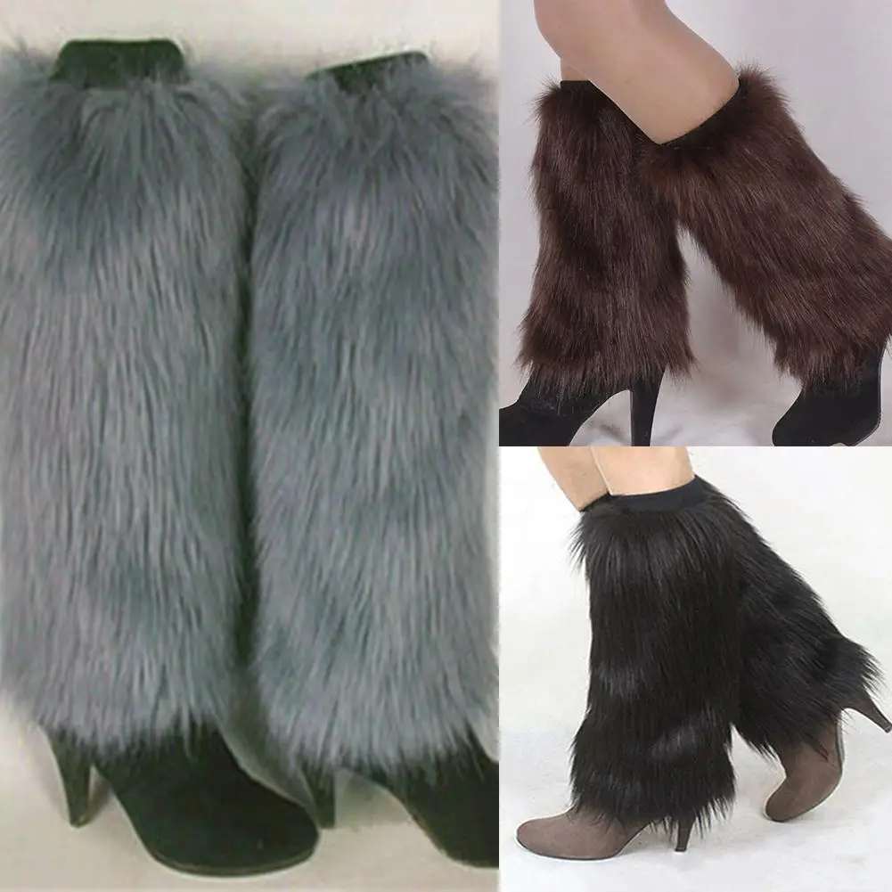 Теплые модные однотонные длинные гетры из искусственного меха зимние женские носки