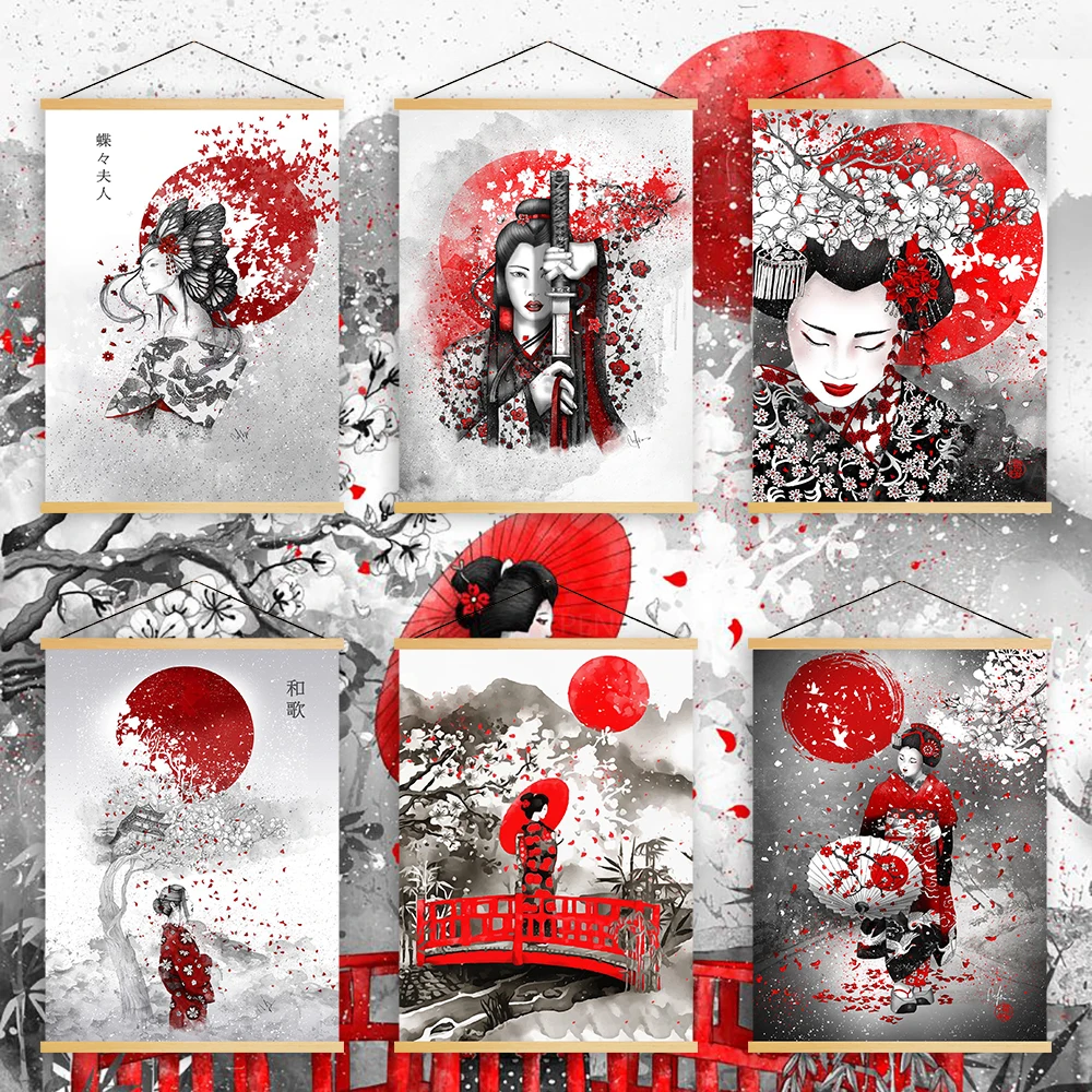 Настенное искусство в скандинавском стиле, японская девушка гейши, ...