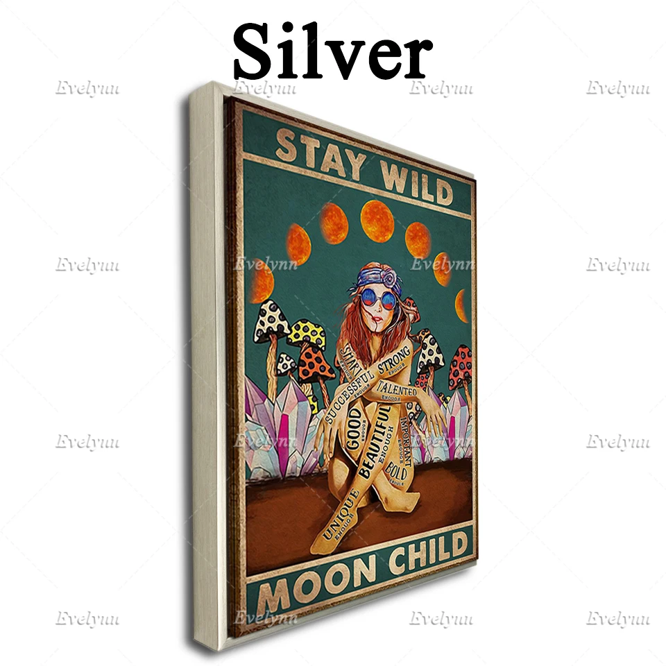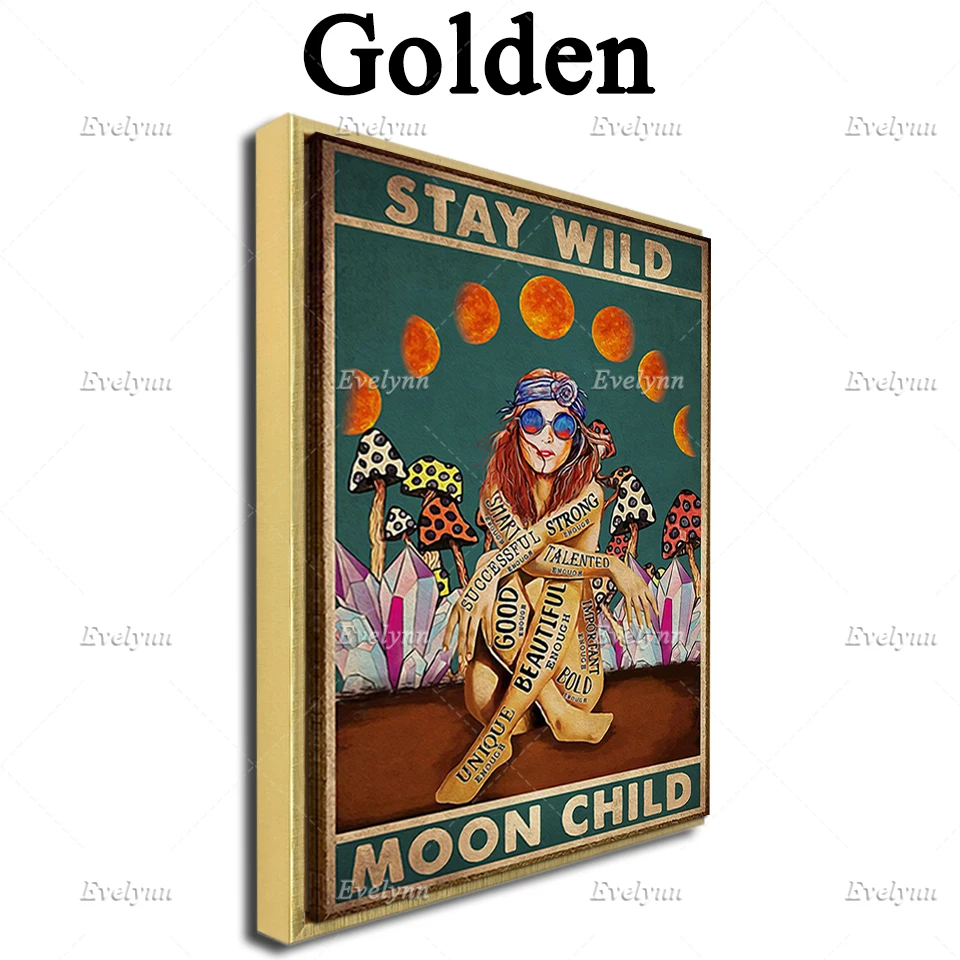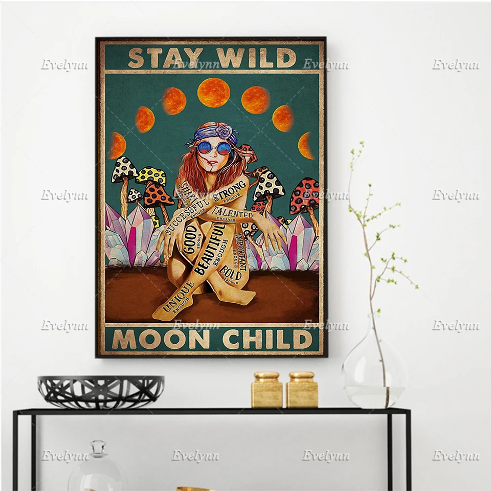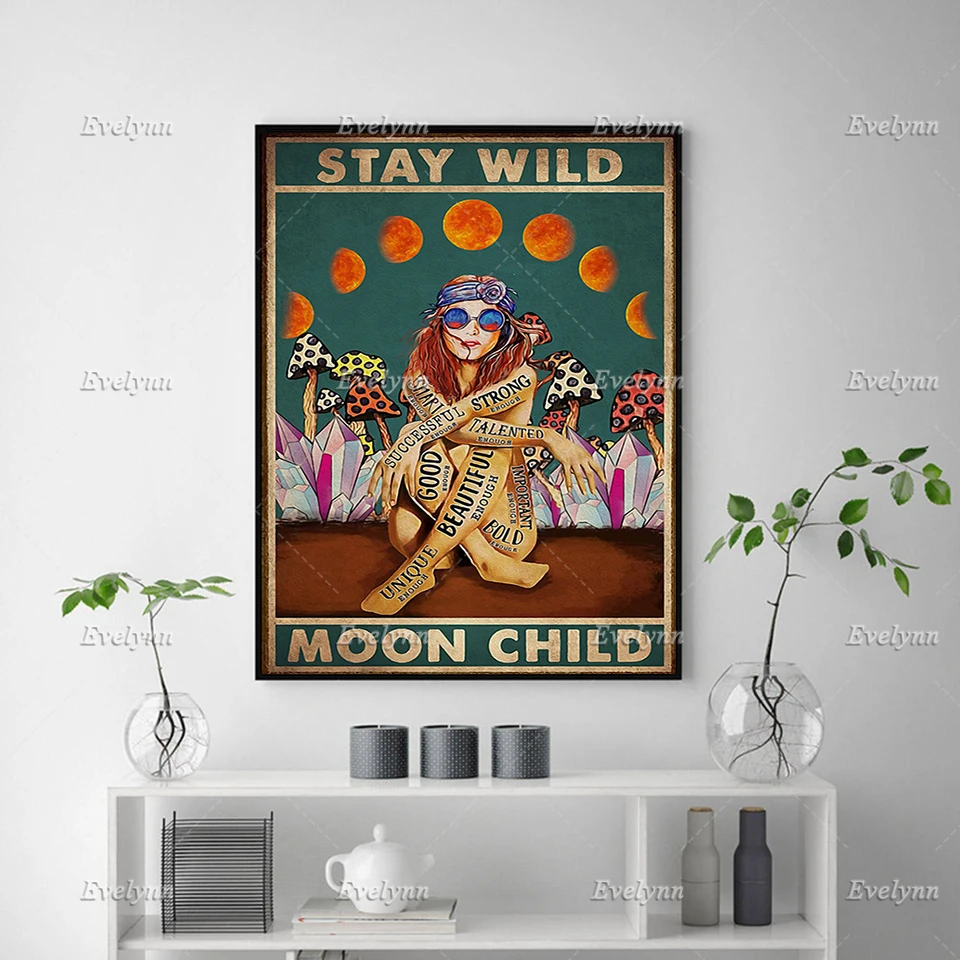 Stay Wild луна Ретро постер, Hippiegirl плакат, плакат с грибами, девушка, гриб художественная, дома, Декор в гостиную картины на холсте принты