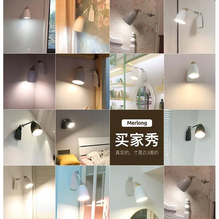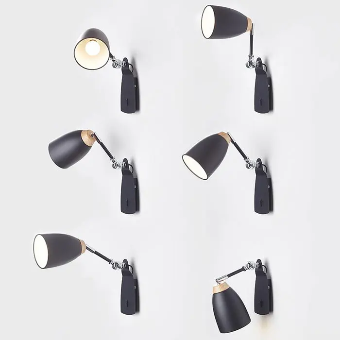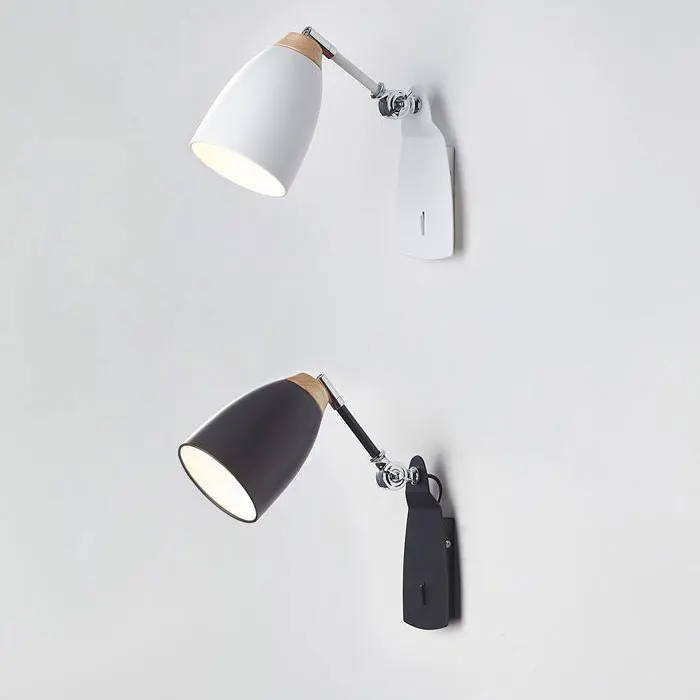 Настенный светильник черно-белый, нордический регулируемый, с переключателем, лофт, 5 Вт, E27 LED светильник с настенным креплением, для спальни, гостиной, офиса