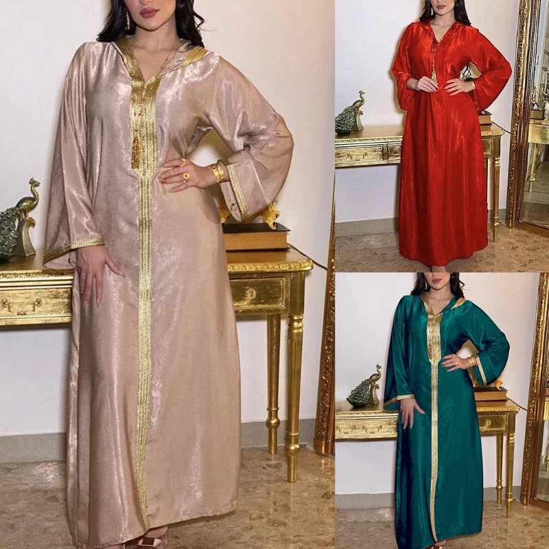 100% новый и высокое качествоРасклешенные длинные рукава, вышивка золотистой кружевной окантовкой, v-образный вырез, Повседневная застежка, свободный крой.Длинное длинное платье макси, блестящее однотонное бархатное платье с капюшоном и капюшономИзготовлен из высококачественного полиэстера, шелковистый гладкий, приятный на ощупь, мягкий, дышащий, удобный.Идеально подходит для повседневной носки, церкви, завтрака, путешествий и других случаев. Скромный и уникальный.Это платье полностью покрывает вашу конфиденциальность. Отличный подарок для мамы, жены, сестры, подруги, друга или любого, кого вы любите.Только 1 платье, другие аксессуары на фото не включены!Спецификация: