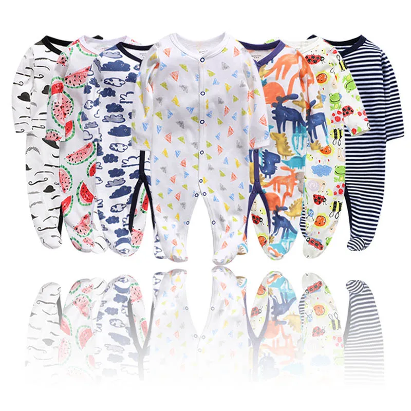 Детская одежда для новорожденных, одежда для сна для мальчиков и девочек, пижамные комбинезоны с запахом для ног, хлопковые комбинезоны с длинным рукавом, одежда для маленьких мальчиков на весну и осень