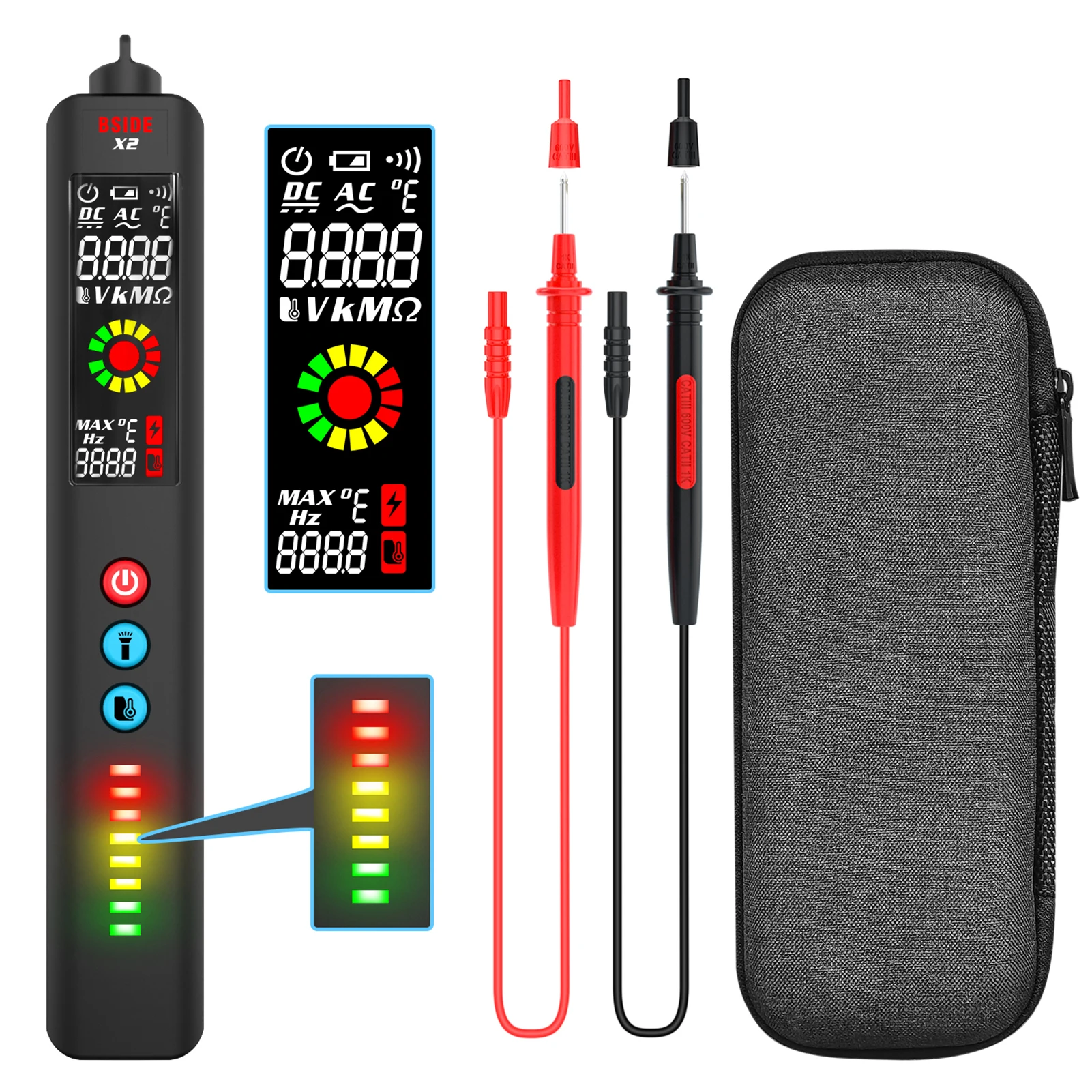 Умный Цифровой мультиметр BSIDE X2, высокоточный инфракрасный измеритель температуры, ЖК-экран, детектор напряжения постоянного и переменного тока, светодиодный фонарик