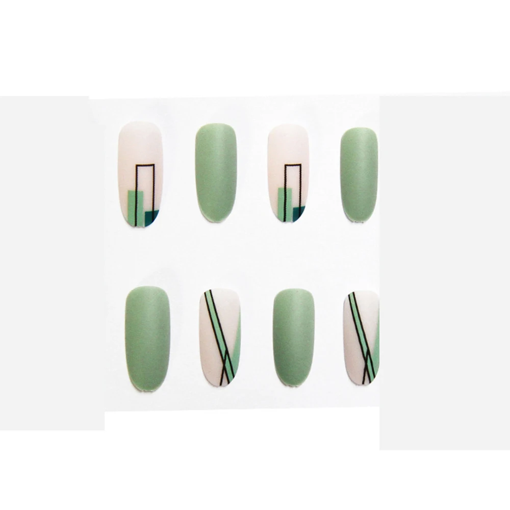 Накладные ногти, 24 шт., матовые зеленые патчи для ногтей, клеевой ...