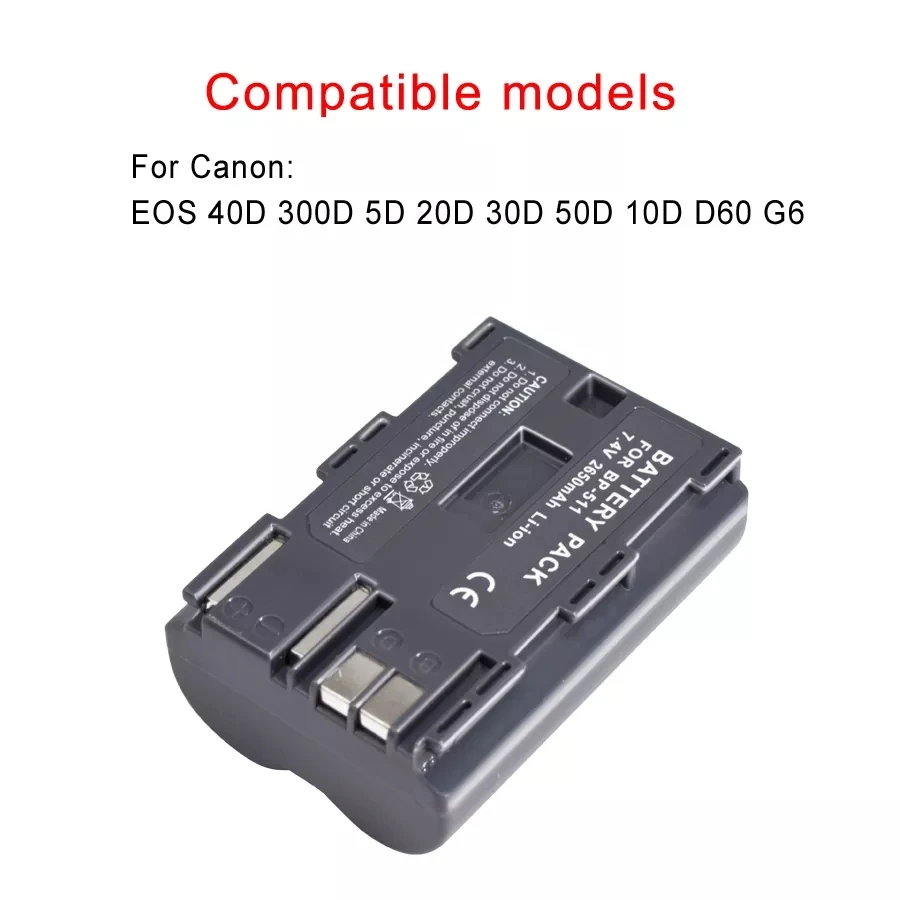 Для CanonEOS-300D 5D 10D 20D 30D 40D 50DPowerShot G1 G2 G3 G5 G6 90 90ISPro1 FV 300KIT 40KIT V250IMV30i 300 300i 400i 430i 450i 500i 600i 630i 650i 700i 750iMVS 100i 150i 2i 1i ZR20 25MC 30MC 50MCХарактеристики продукта:Номер модели: BP-511 BP-511AТип: литий-ионная аккумуляторная батареяНапряжение: 7,4 вЕмкость: 2650 мАчЦвет: черныйВес: 70 г