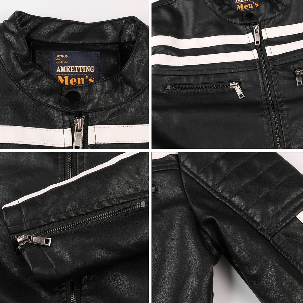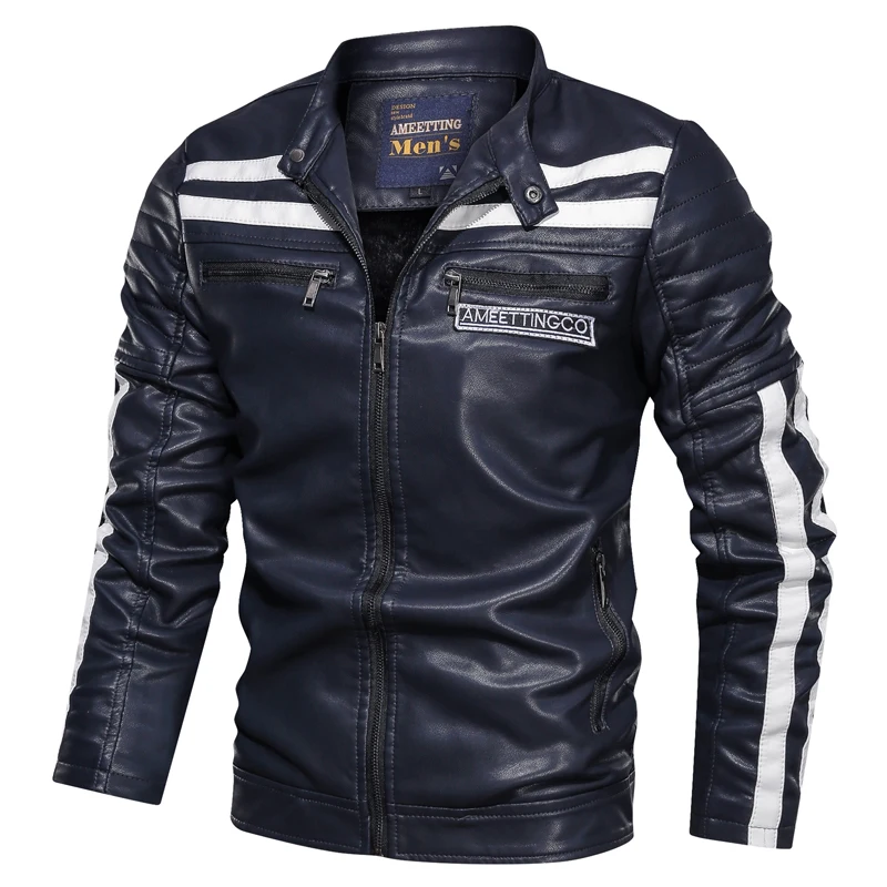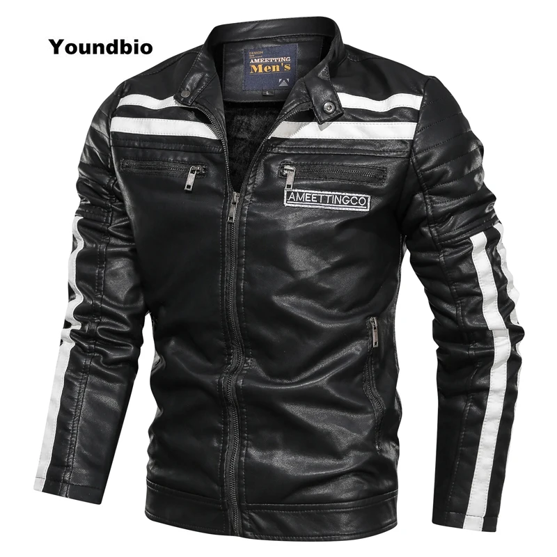 Мужские ботинки в байкерском и винтажном стиле куртка 2021 для мужчин новая модная Байкерская кожаная куртка для мальчиков; Полосатая куртка-бомбер зима из Pu искусственной кожи, на молнии, верхняя одежда, L-6XL