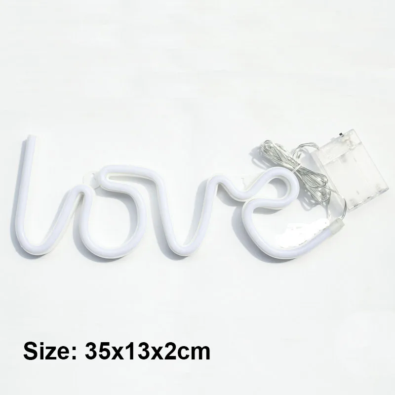 Сфера применения: украшение дома, свадебный фон, праздничное платье, окно, отель, вечерние чный бар, КТВ, сценическая планировка и т. д. Характеристики: * Основной Материал: Поликарбонат * Цветовая температура источника светильник: розовый, теплый белый, красный светильник, светильник * Мощность: 5 В * Мощность: USB, Батарейный отсек двойного назначения * Питание: 3 батарейки типа АА (не входят в комплект), размер USB * буквы: 35,5 см X 13 см X 2 см/1,9 X дюйма * Мощность: Вт * срок службы источника светильник: 50000 ч Примечание: световые эффекты могут отличаться из-за яркости окружающей среды. Посылка: 1 х светодиодный неосветильник (без батареек)