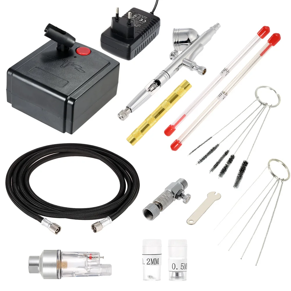 Аэрограф Двойного действия с профессиональной гравитационной подачей, с воздушным компрессором, набор инструментов для художественной росписи, маникюра, спрея