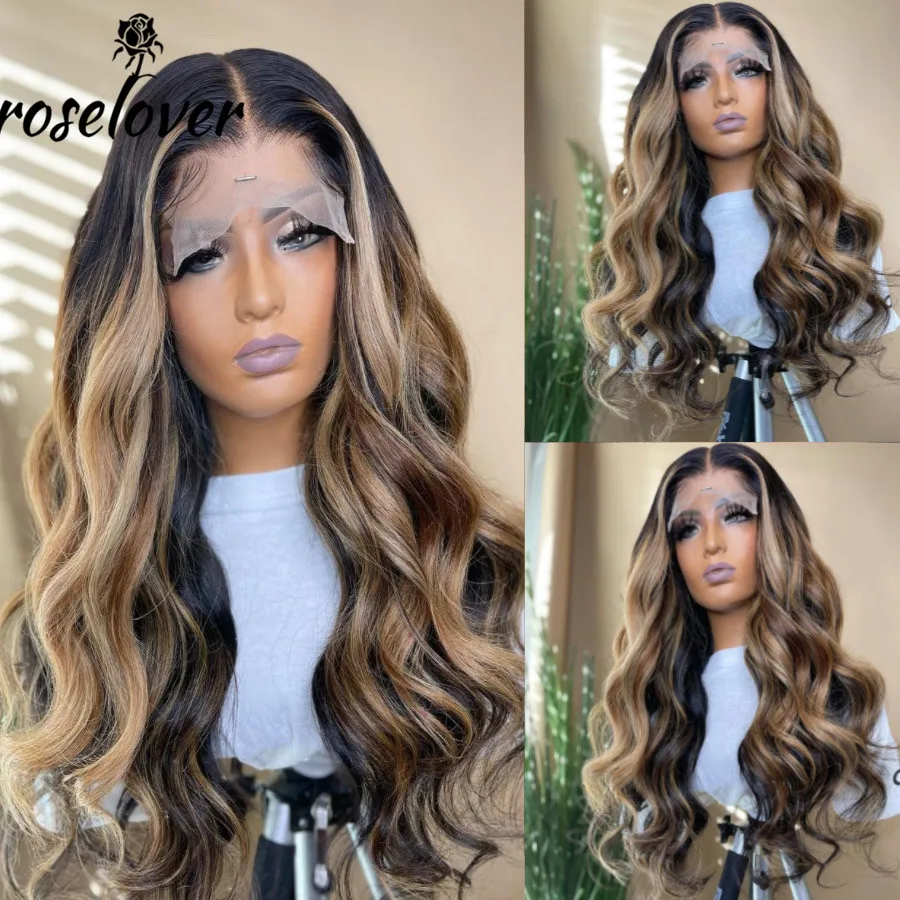 Хайлайтер медово-светлые человеческие волосы на сетке, фронтальные парики, волнистый парик, предварительно выщипанные бразильские волосы Remy, парик, отбеливающие узлы для женщин