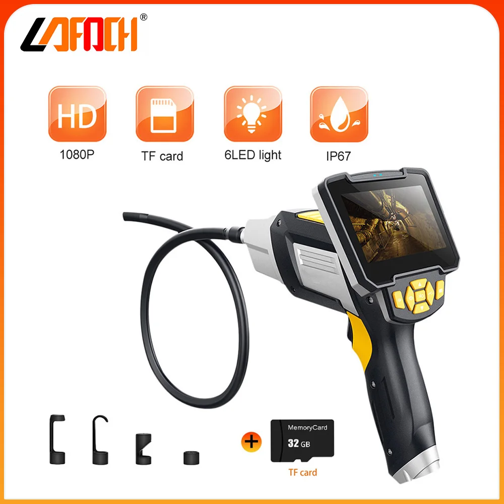 8 мм одиночный объектив Ручной эндоскоп HD промышленный бороскоп инспекционный двигатель 4,3 ''ЖК-экран Водонепроницаемая камера дренажная труба осмотр