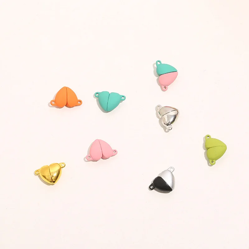 5 пар в упаковке, магнитные бусины в форме сердца, изготовление ювелирных изделий из сплава, розовый, синий, черный, золотой цвет, матовая поверхность, магнит, двойная подвеска, DIY браслет