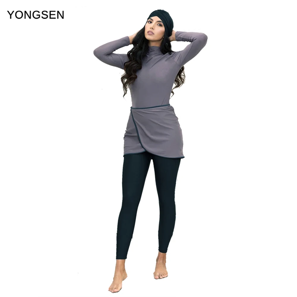 YONGSEN 2021 г., Burkinis, Мусульманский купальник, женский купальник с длинным рукавом, 3 шт., мусульманский скромный хиджаб в стиле пэчворк, спортивная одежда, купальный костюм