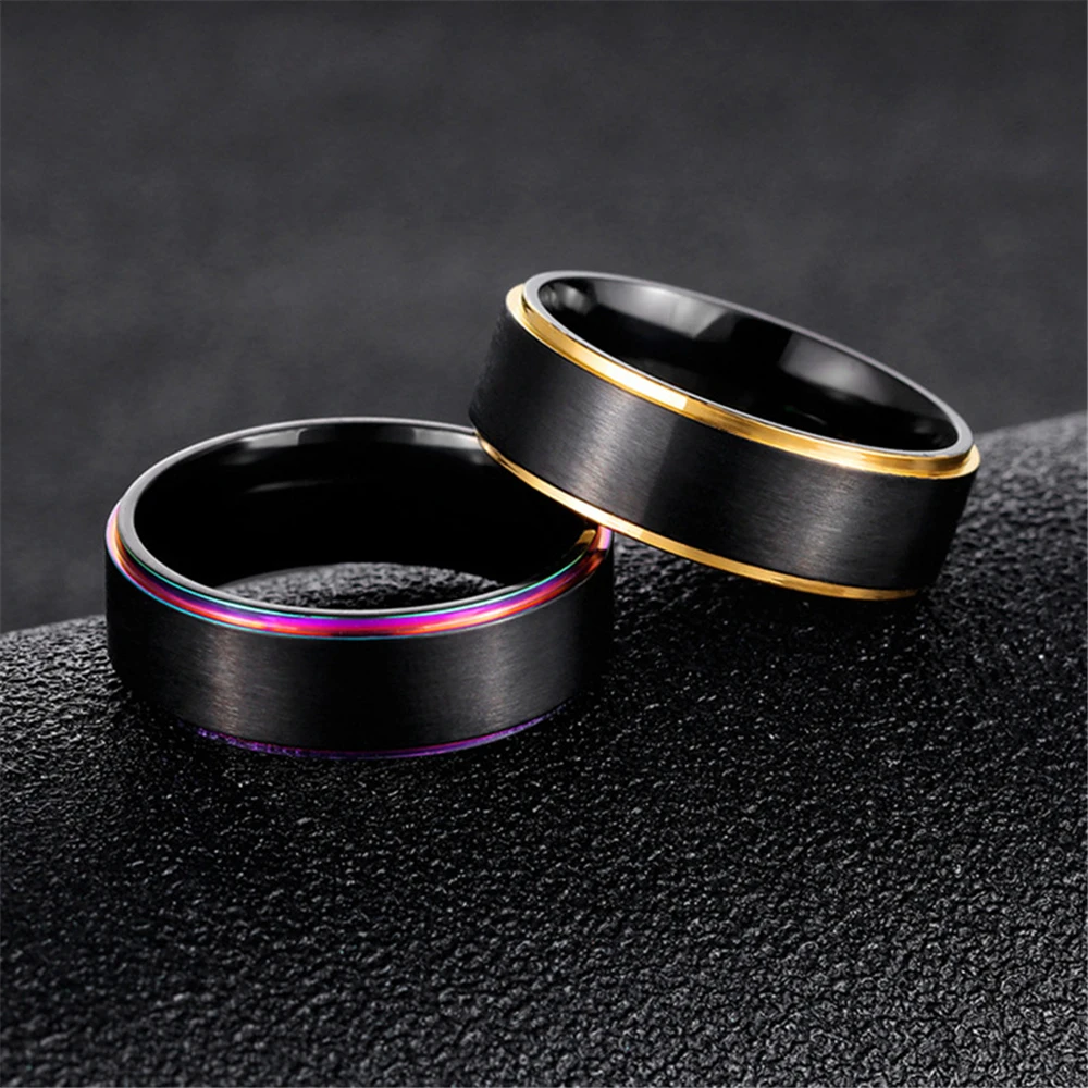 Мужское черное обручальное кольцо из нержавеющей стали, двухцветные...