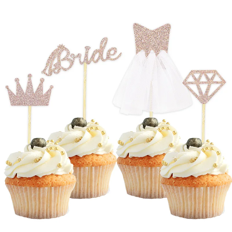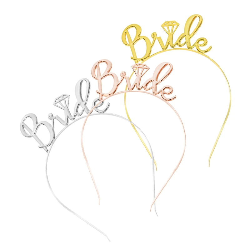 Пластиковая расческа пришита на вуаль и легко носить.1 Розовая Золотая Невеста с золотыми буквами, 1 свадебная корона, 1 вуаль.8 торт Топпер, 3 татуировки наклейки