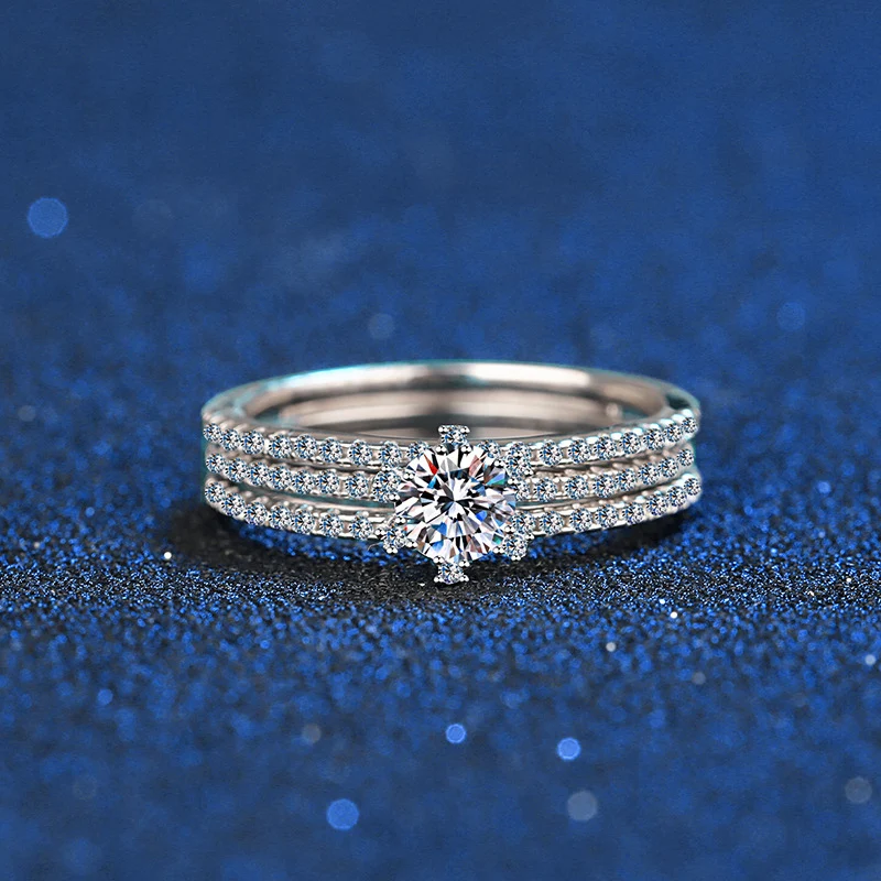 Набор колец с бриллиантами, 2 шт., однотонные, 0.5ct, VVS1, Муассанит, 14 к, белое золото, серебро 925 пробы, обручальное кольцо для невесты, наборы обручального кольца