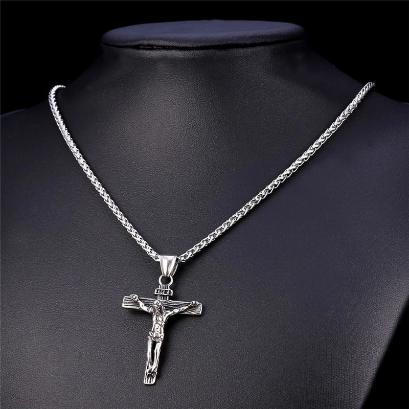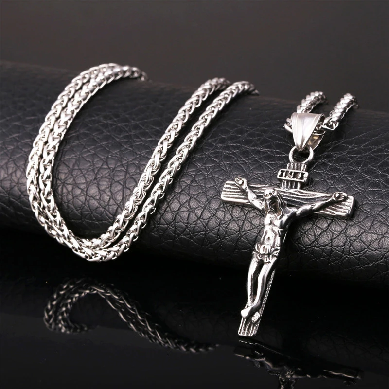 Винтажные религиозная Подвеска "Иисус" Крест подойдет в качестве подарка как для мужчин, так и для модные золотые Цвет крест кулон с цепочкой колье, ювелирные изделия в качестве подарка для мужчин 1 шт.
