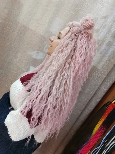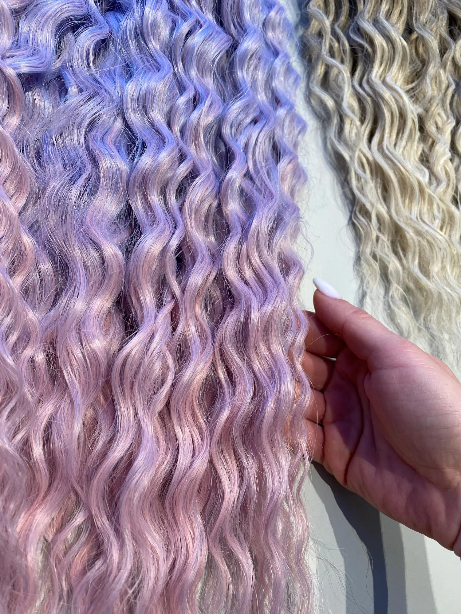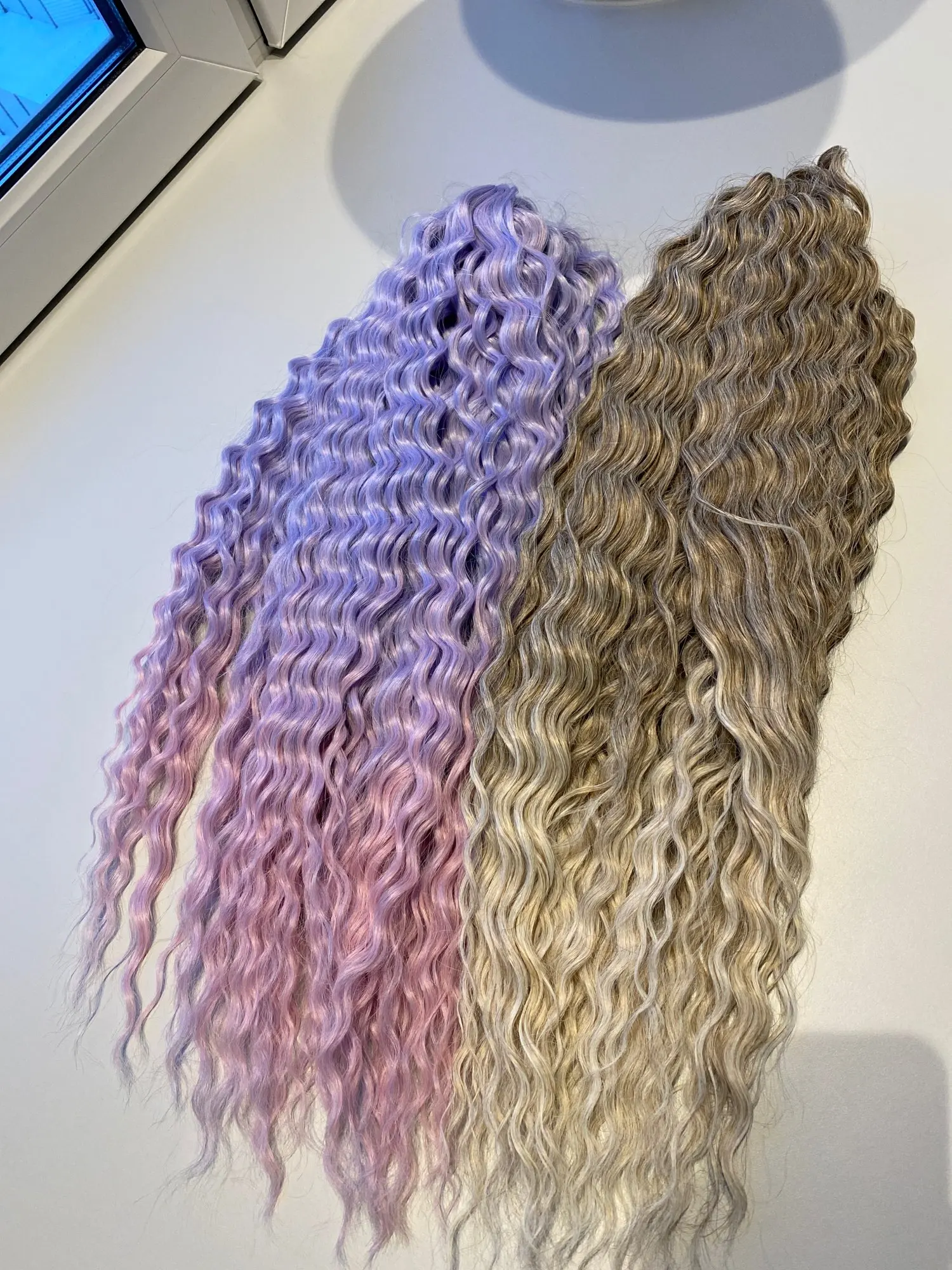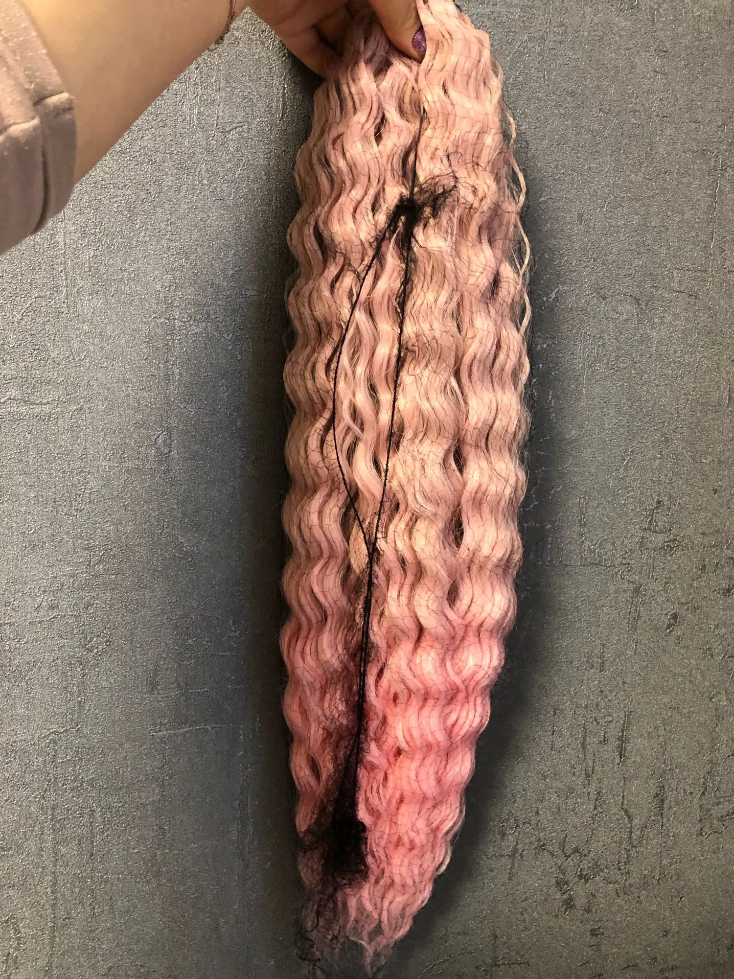 Ариэль, вьющиеся волосы, волнистые крученые вязаные волосы, искусственные волосы, светлые, розовые, 22 дюйма, длинные волнистые, плетеные вол...