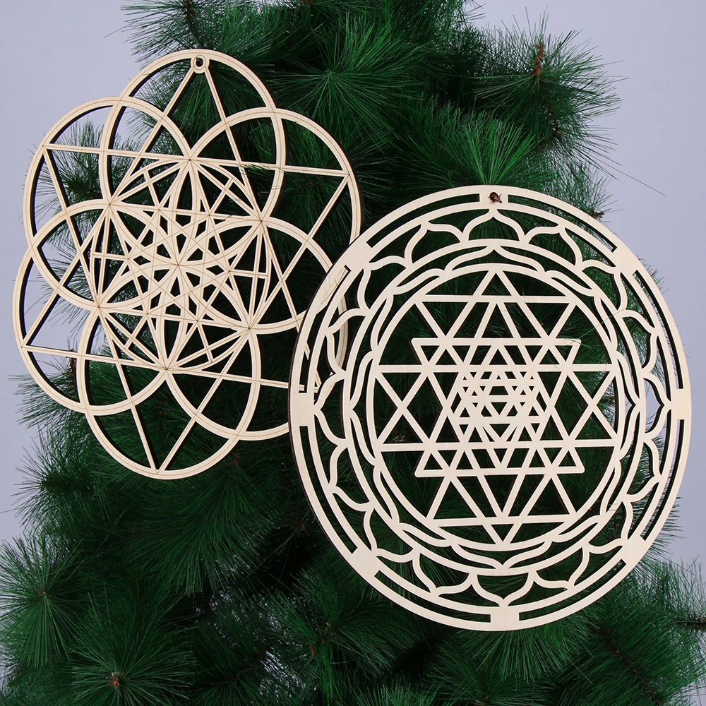 Деревянная настенная вывеска в форме цветка Жизни Лазерная резка деревянная настенная живопись Домашний декор подставки ручной работы изготовление священного геометрического орнамента